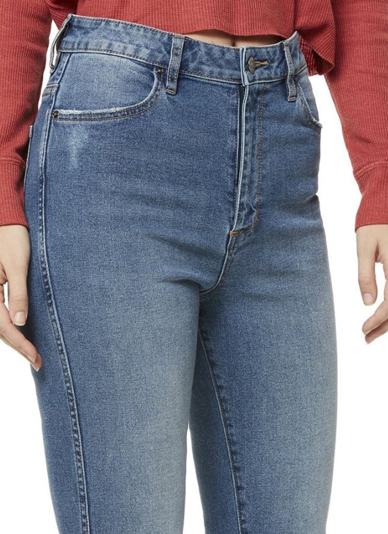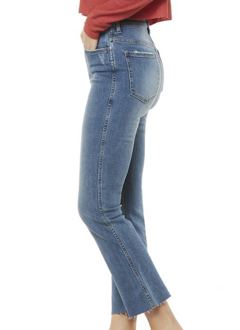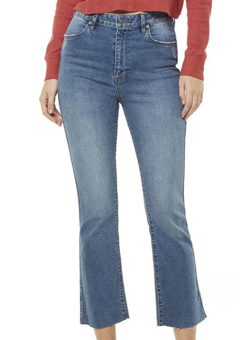 A high-rise jean in a vinatge blue wash, the Kicker Jean features a cropped and slightly flared raw cut-off hem. This classic 5-pocket design is the perfect jean to mix up your denim collection!