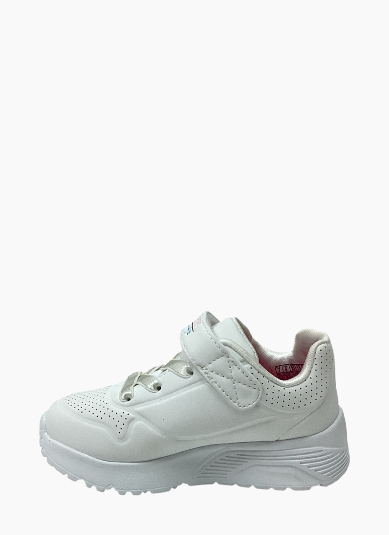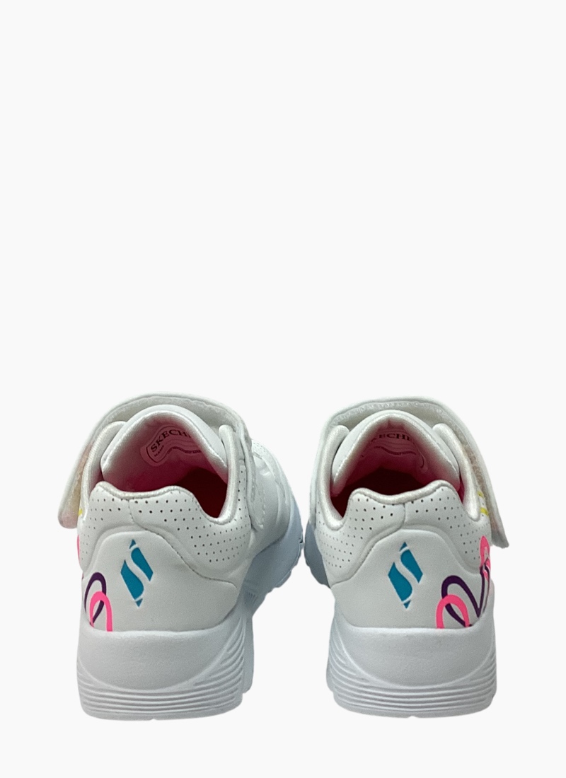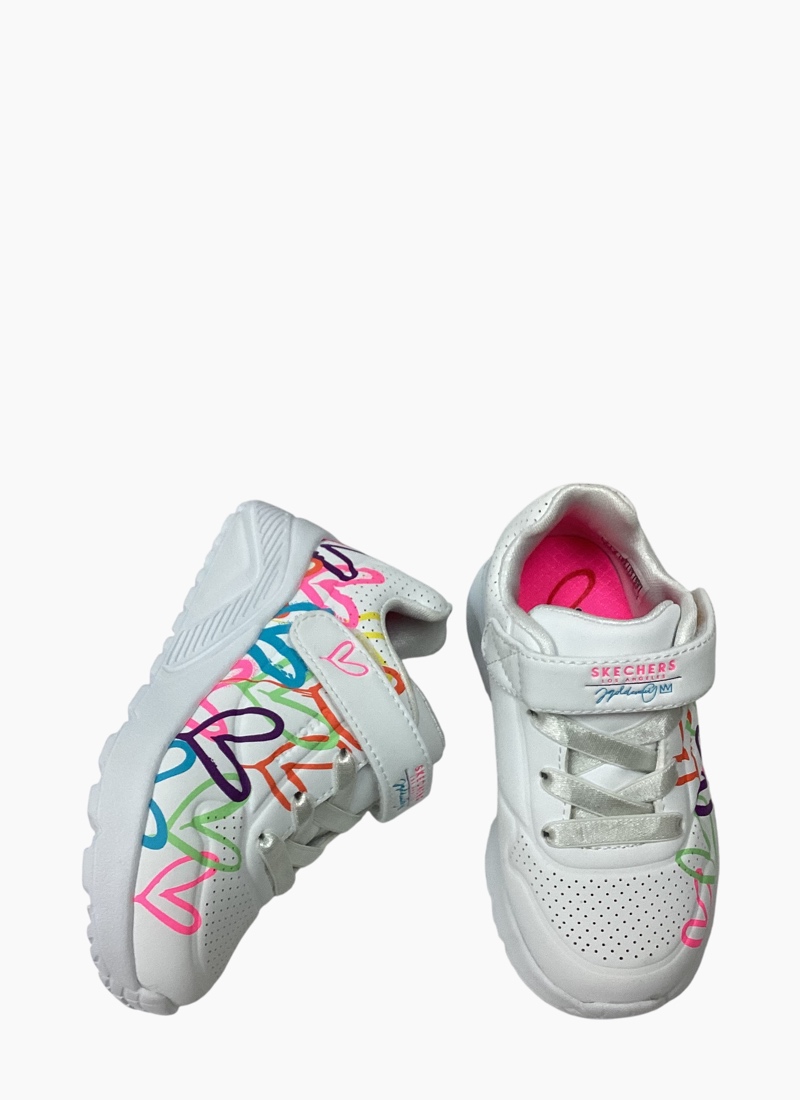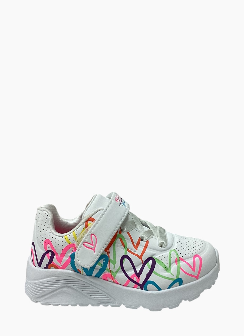 Internationally renowned muralist James Goldcrown brings his iconic #Lovewall heart designs to Skechers in this inspiring collaboration. Show your creative style wearing Skechers Street™ x JGoldcrown: Uno Lite. This lace-up fashion sneaker features a print of the artist's signature graffiti heart design that extends to the midsole, a synthetic durabuck and perforated trim upper.
