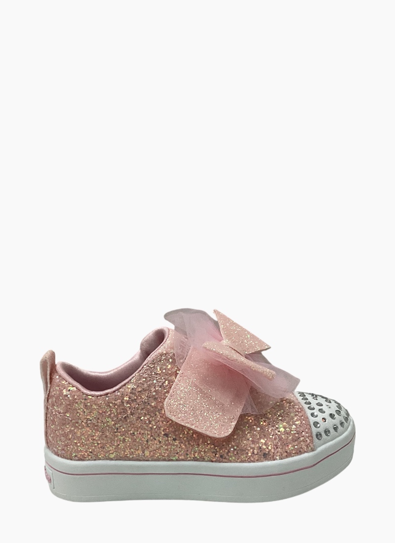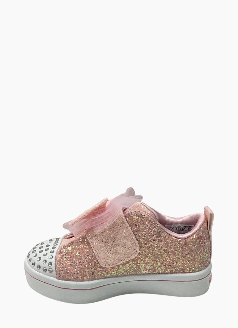 Light up their little world with Skechers Twinkle Toes®: Twi-Lites 2.0 - Sweetie Bow. This sparkly design features an allover glitter upper with a light-up rhinestone embellished toe cap and closure strap with a tulle and rhinestone embellished bow.