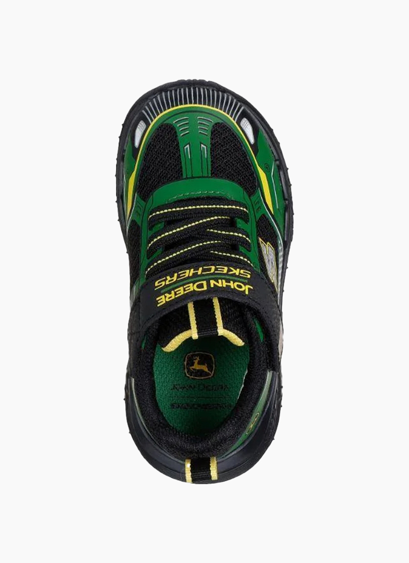 Get ready for outdoor adventures wearing Skechers x John Deere: Skech Tracks - Tractor-Tronix! This lightweight sneaker features a John Deere tractor inspired silhouette, synthetic and mesh upper with stretch laces, Skechers adaptive closure and a cushioned Skechers Air-Cooled Memory Foam® insole.