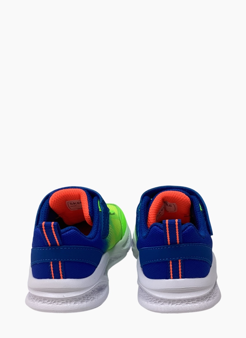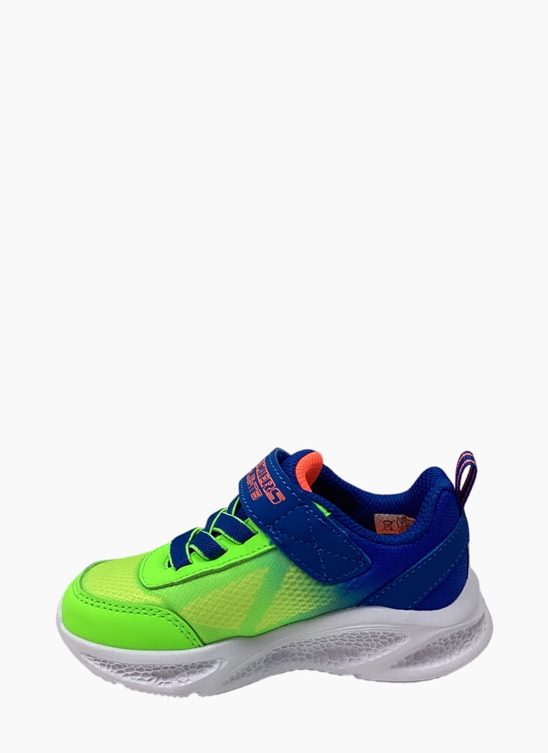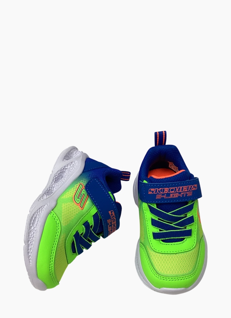 Illuminate your steps in sporty style and comfort with Skechers S-Lights®: Meteor-Lights - Krendox. This stretch-laced design has a mesh and synthetic upper with a Skechers Adaptive Closure for a customized fit, plus a fun light-up midsole.