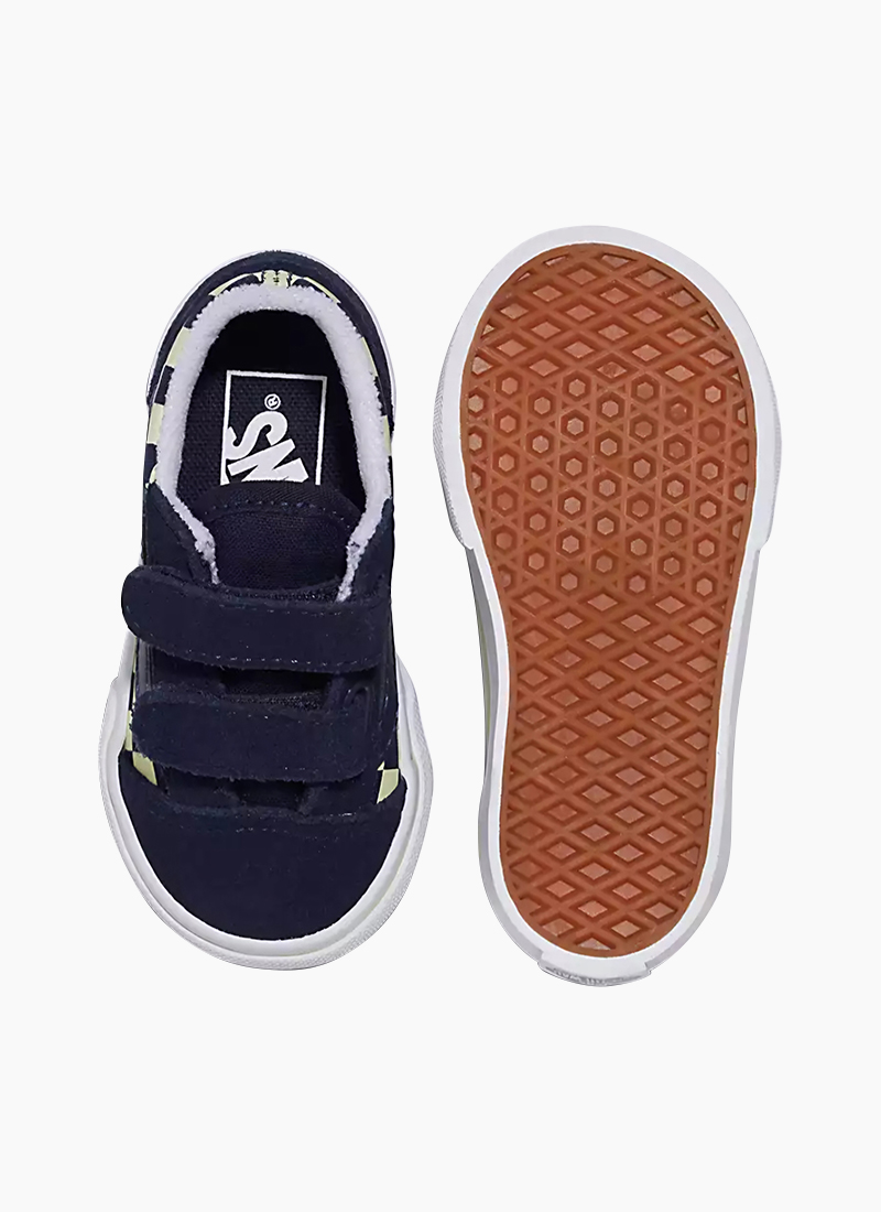 The Iconic Shoe that Brought our Sidestripe to Life: This is the Old Skool. The Old Skool was our first footwear design to showcase the famous Vans Sidestripe—although back then, it was just a random doodle drawn by founder Paul Van Doren. Since its debut in 1977, this low-top silhouette has established itself as an icon in the skate, music, and fashion scenes. From 90s street skaters and punks to current hip hop and fashion legends, the Kids Old Skool has consistently been the go-to shoe for creatives who do things their own way. Add in a glow-in-the-dark checkerboard pattern, and enjoy the extra dose of signature Vans style, day or night.