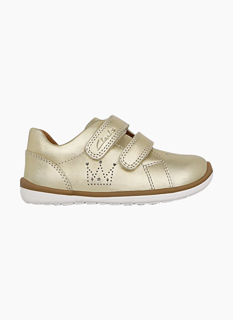 Active little feet will love Macy! Ready to wear for any occasion, the superior soft leather and padded collar make it feel as comfy as it is fun. The subtle crown detail make these sneakers a cool update for the wardrobe!