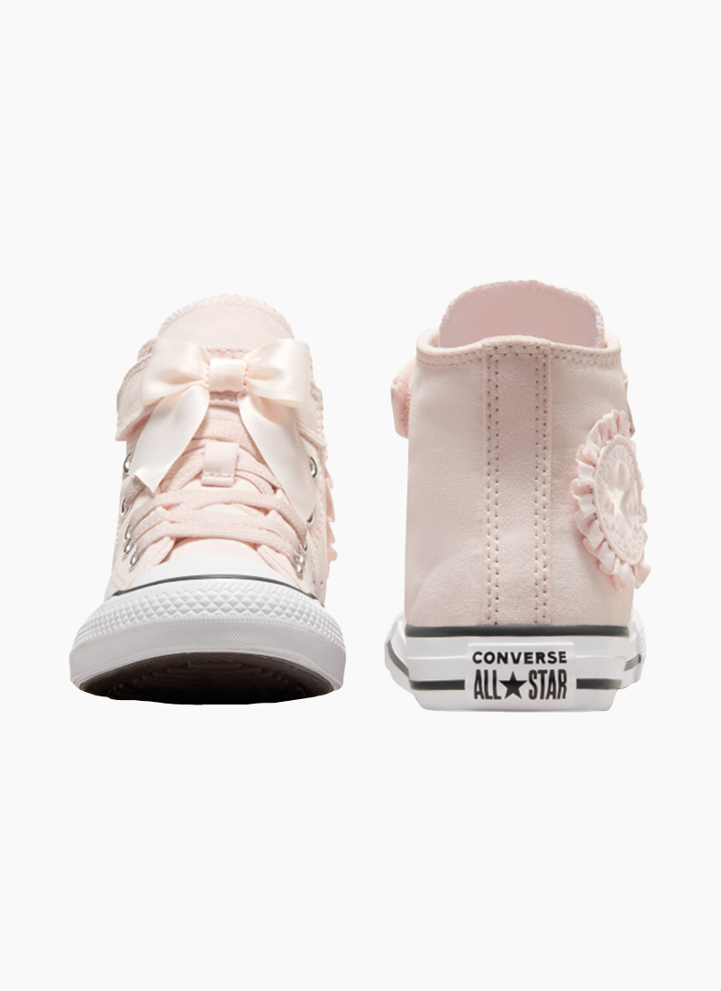 - Canvas upper with bows and ruffles for a delicate take on the classic Chucks look