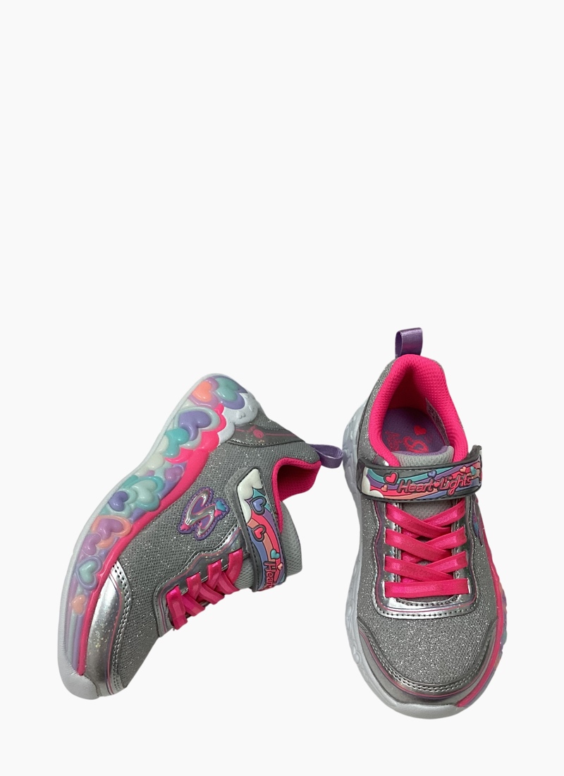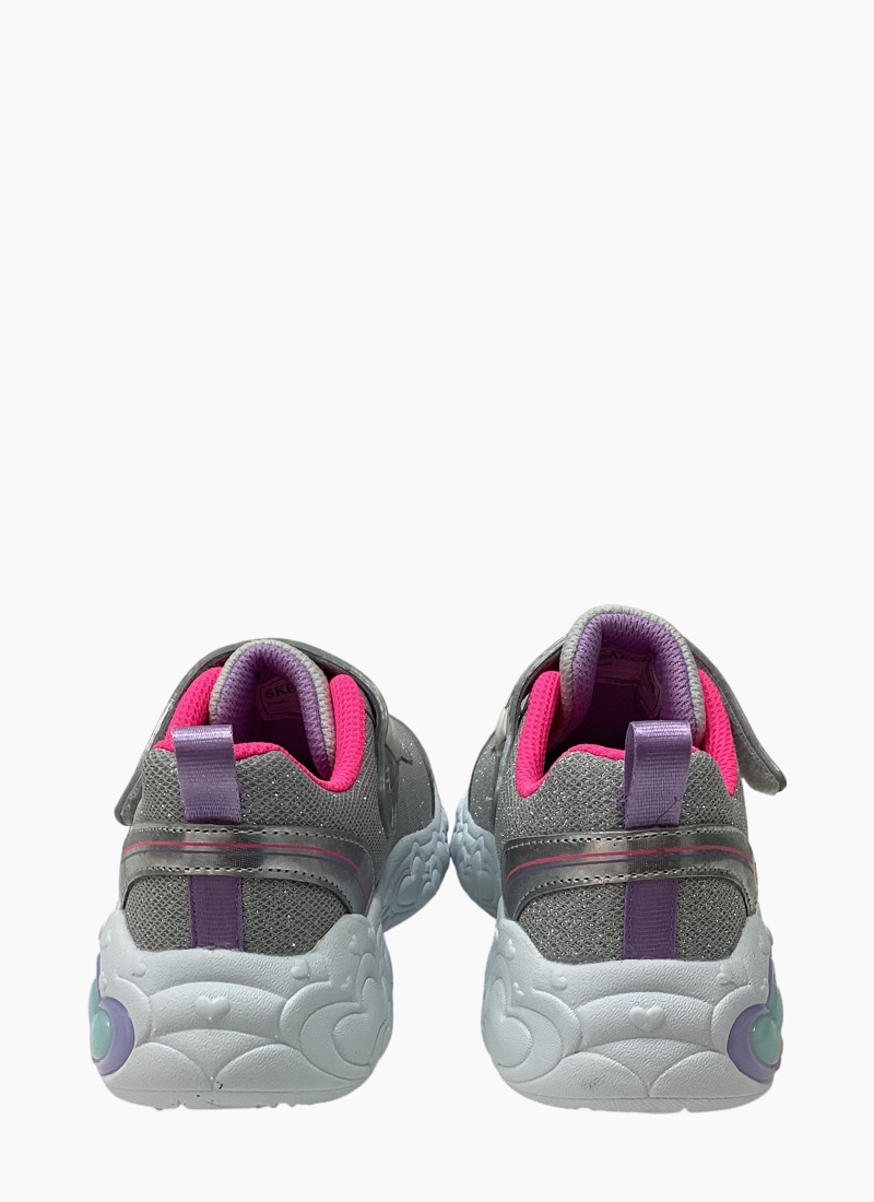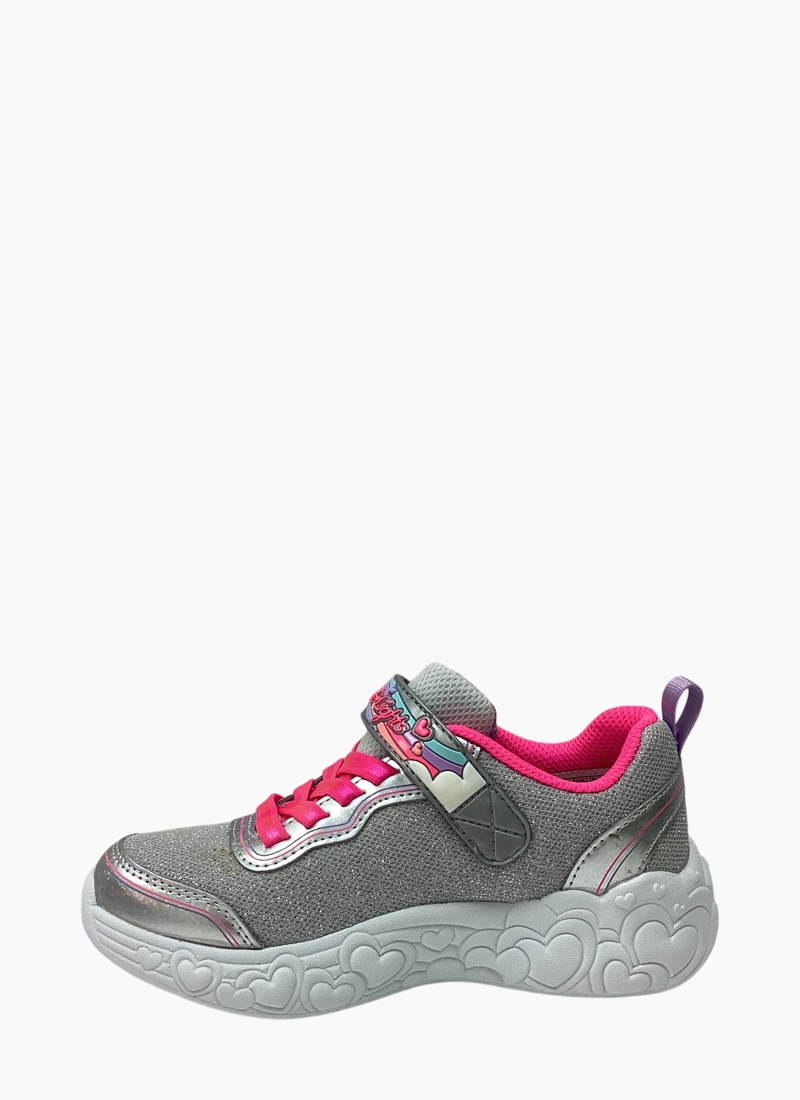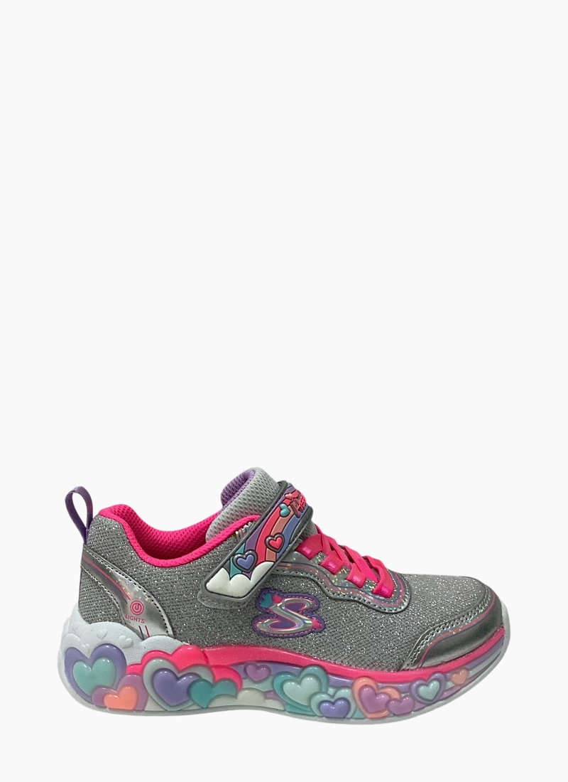 Sporty style gets lit-up and lovable with Skechers S-Lights®: Eternal Heart Lights- Ton Of Love. This lighted design features a sparkle mesh and synthetic glitter upper with stretch-laced front, and a Skechers adaptive closure.
