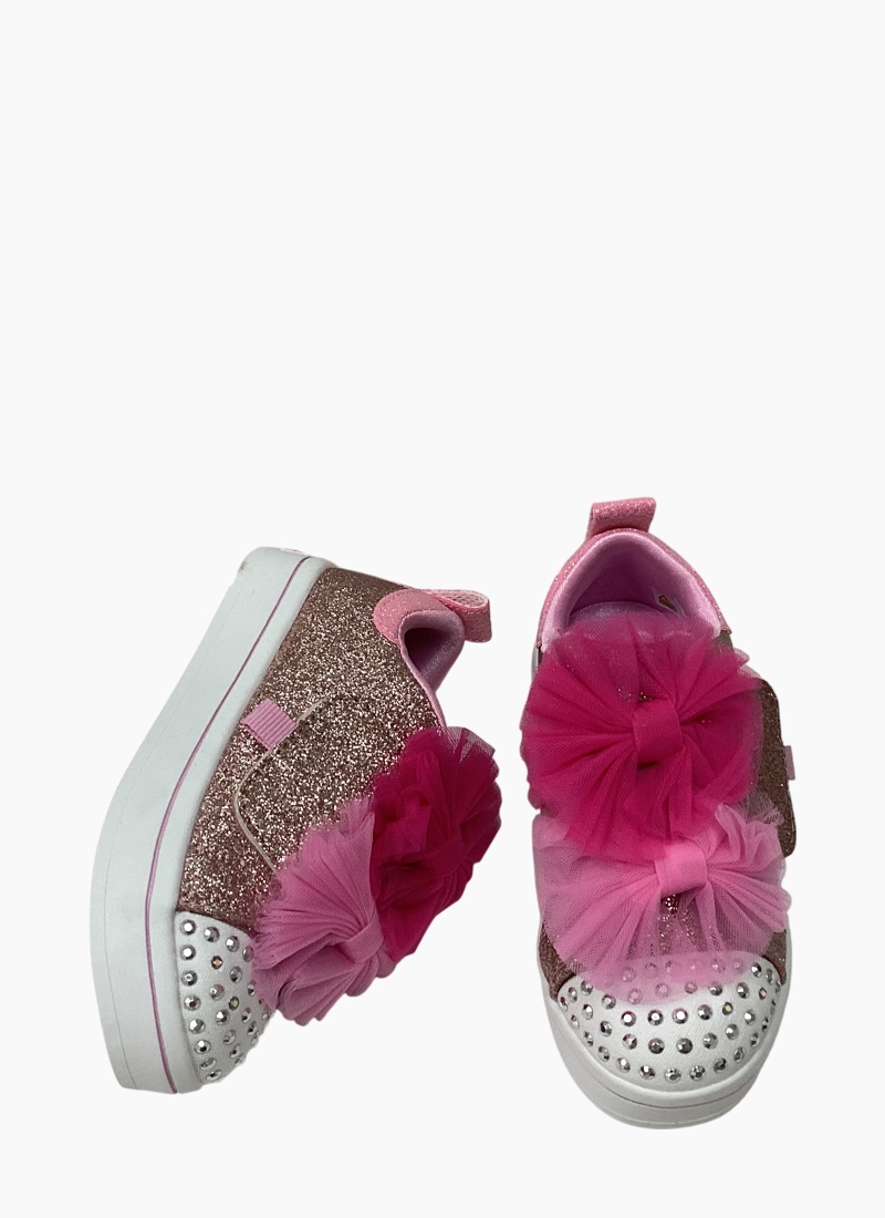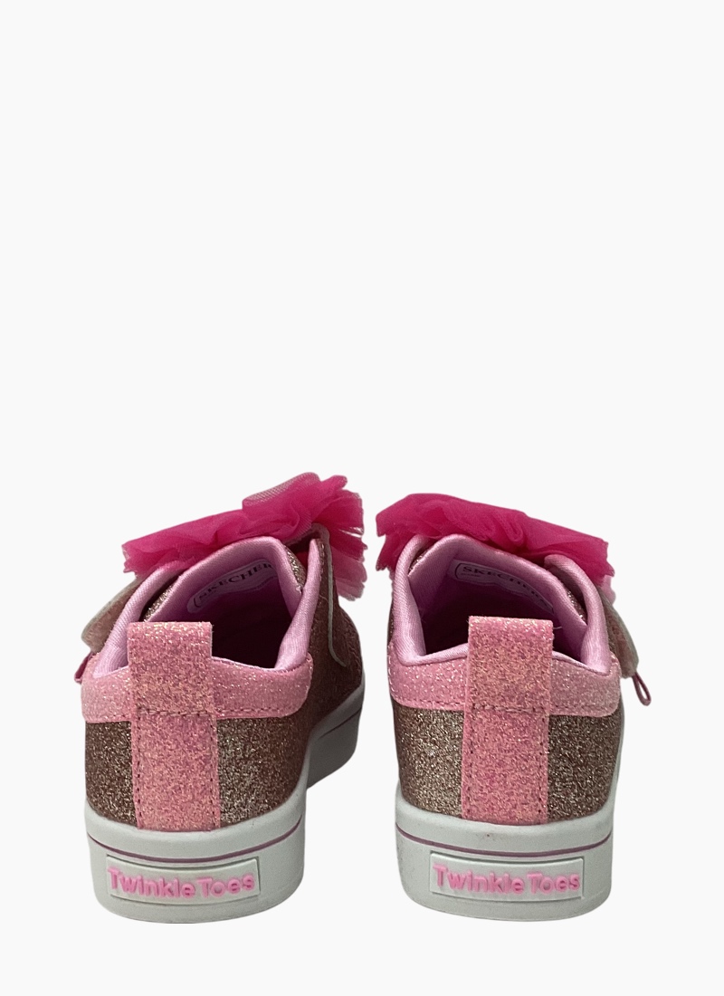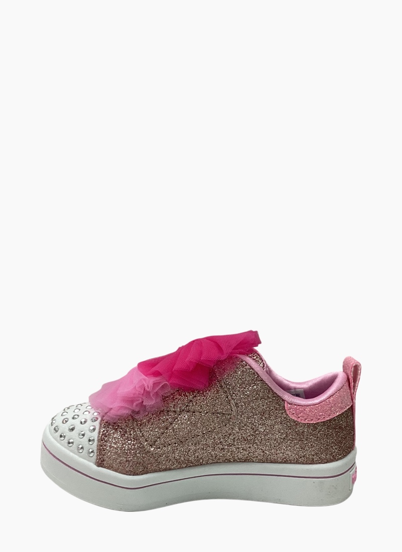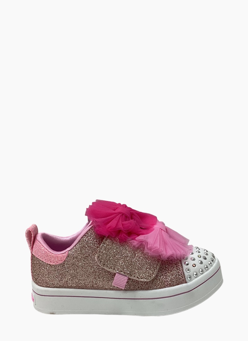 Let them stand out with style they'll love wearing Twinkle Toes®: Twi-Lites 2.0 - Tutu Cute. This lighted design features a rhinestone embellished toe, synthetic glitter upper, Skechers Adaptive Closure and a tulle bow front detail.