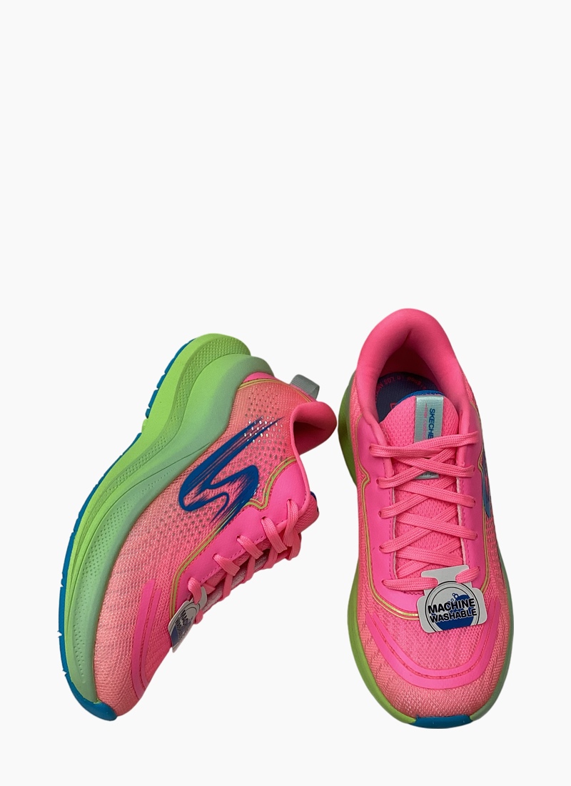 Sleek athletic style with all-day comfort combine in the Skechers Max Cushioning Ascend™ - Aura Speed. This lace-up features an engineered mesh and synthetic upper and a cushioned Skechers Air-Cooled Goga Mat™ insole.