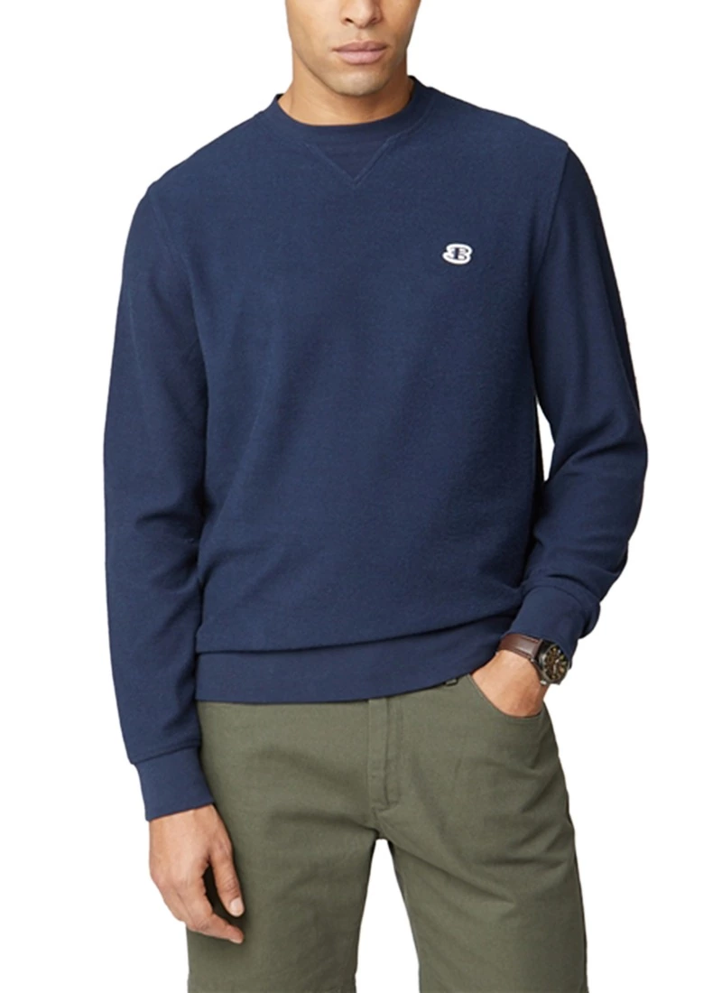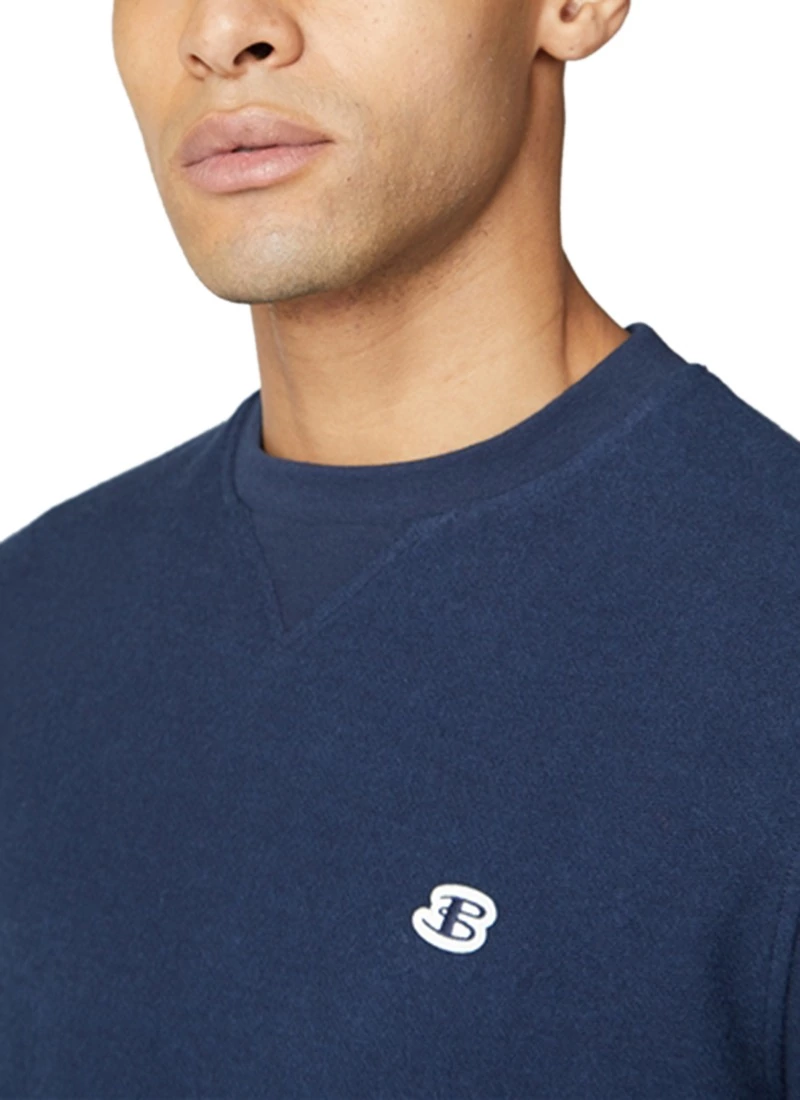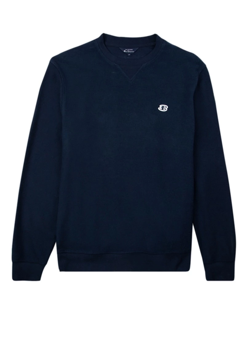A more lightweight jumper with a textured fabric and classic crew neck design. This navy Ben Sherman sweatshirt features a Ben Sherman signature initial badge on the chest and the iconic branding.