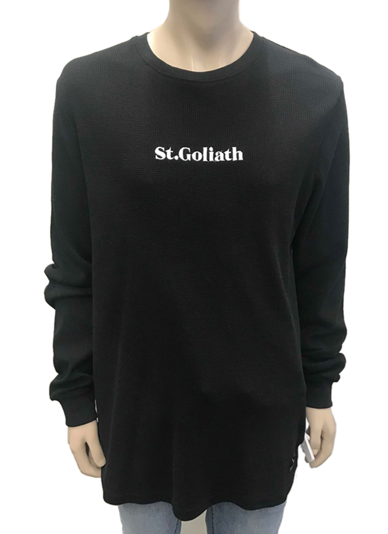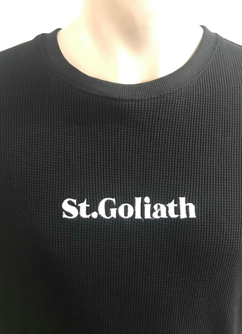 - ST Goliath branding on chest and bottom of knit