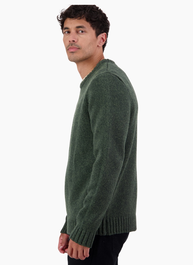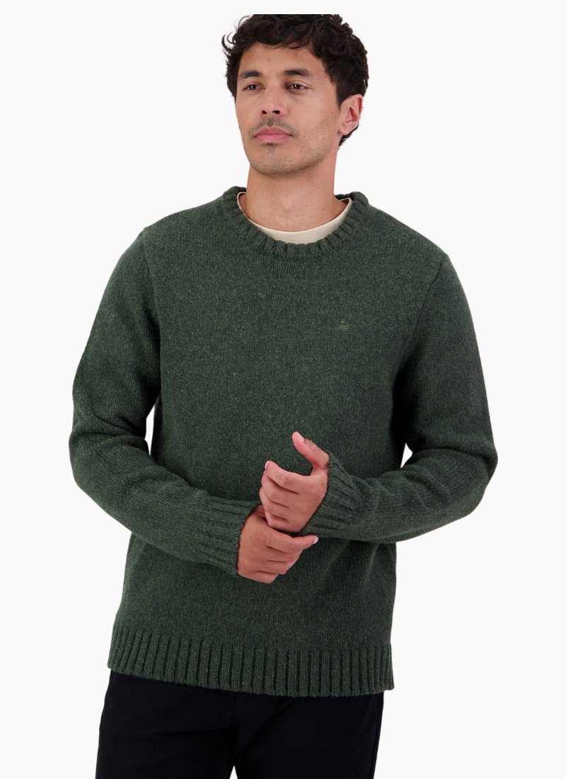 Introducing the Waylins Crew from Swanndri. This forest green wool jumper channels classic Kiwi outdoors heritage with everyday wearable comfort.