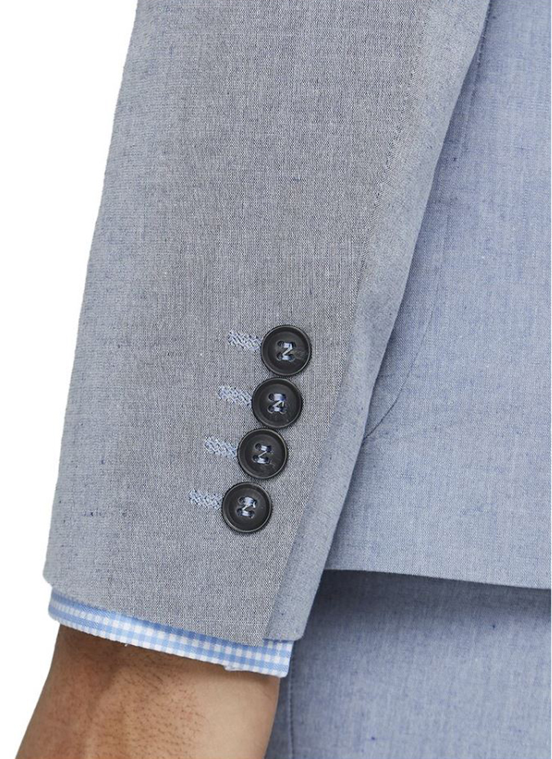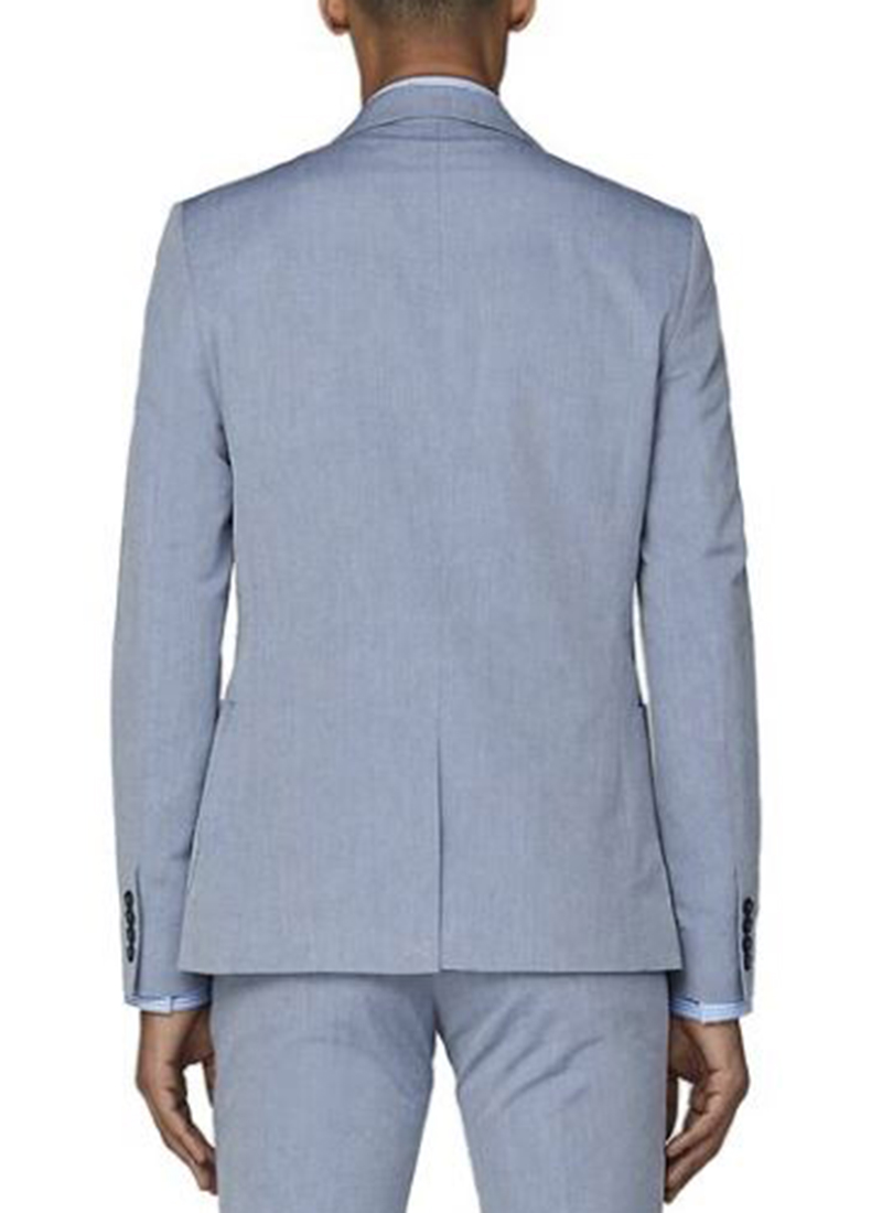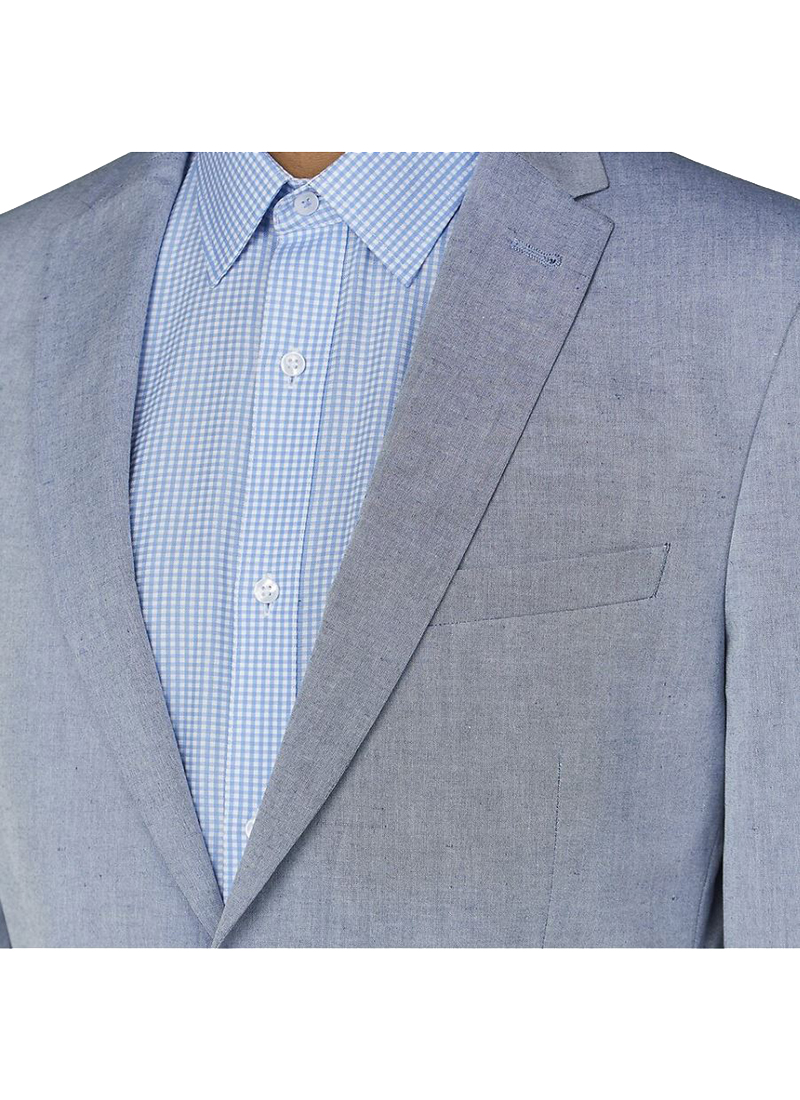 This blue chambray men's jacket has been crafted on our trademark modern Camden Fit block; a sharp, skinny fit cut with narrow lapels and sloped shoulders that creates a stylish profile for any occasion. Our men's suit jackets measure up slimmer than usual. We recommend sizing up to get the perfect fit.