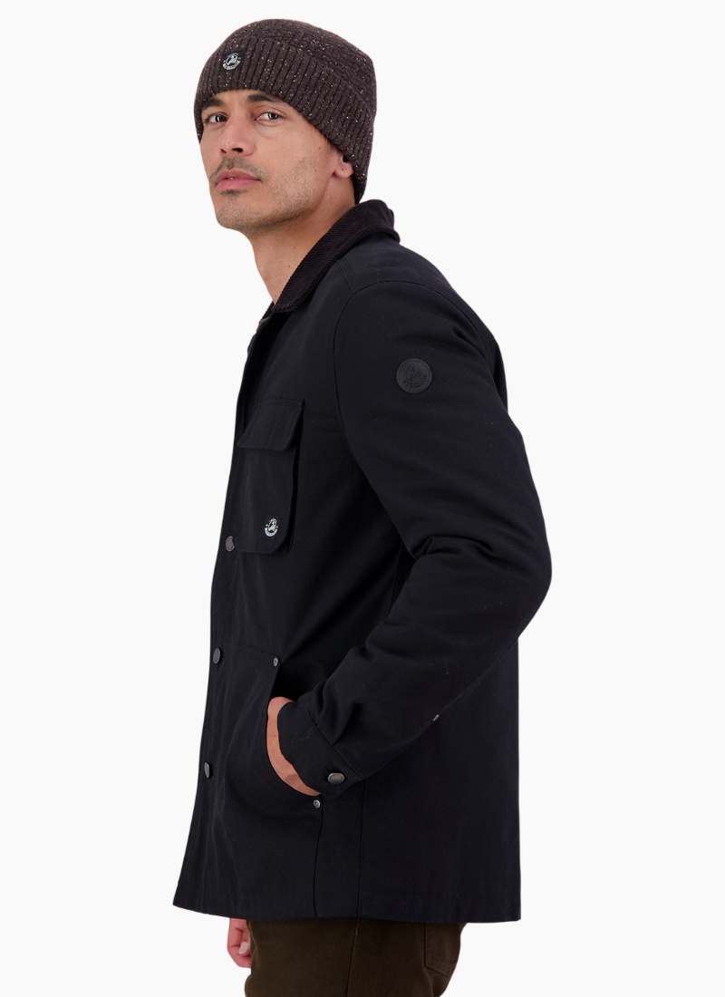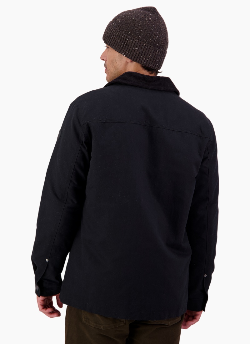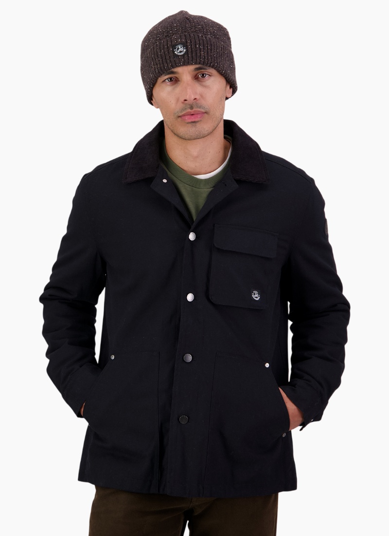 The Men's Barrytown V3 Canvas Work Jacket in Black is a tough, hard-wearing jacket built to handle real work. Made from Swanndri's signature heavy cotton canvas, it's designed to stand up to wear and tear, with triple-stitched seams and rivets reinforcing high-stress areas. A quilted flannel lining adds warmth, while the cord collar brings comfort around the neck in colder conditions. Generous pockets give you space for everything from tools on site to essentials for heading into town. Practical, durable, and built to last, this is a work jacket that earns its keep. Main: 100% cotton canvas, 272gsm Lining: 100% cotton check, quilted insulation Sleeve lining: 55% polyester, 45% viscose Denim shank button front Chest bellow pocket with flap Internal self fabric patch pocket Large angled hand patch pockets Triple needle stitch and rivets at high stress points Swanndri woven label at chest