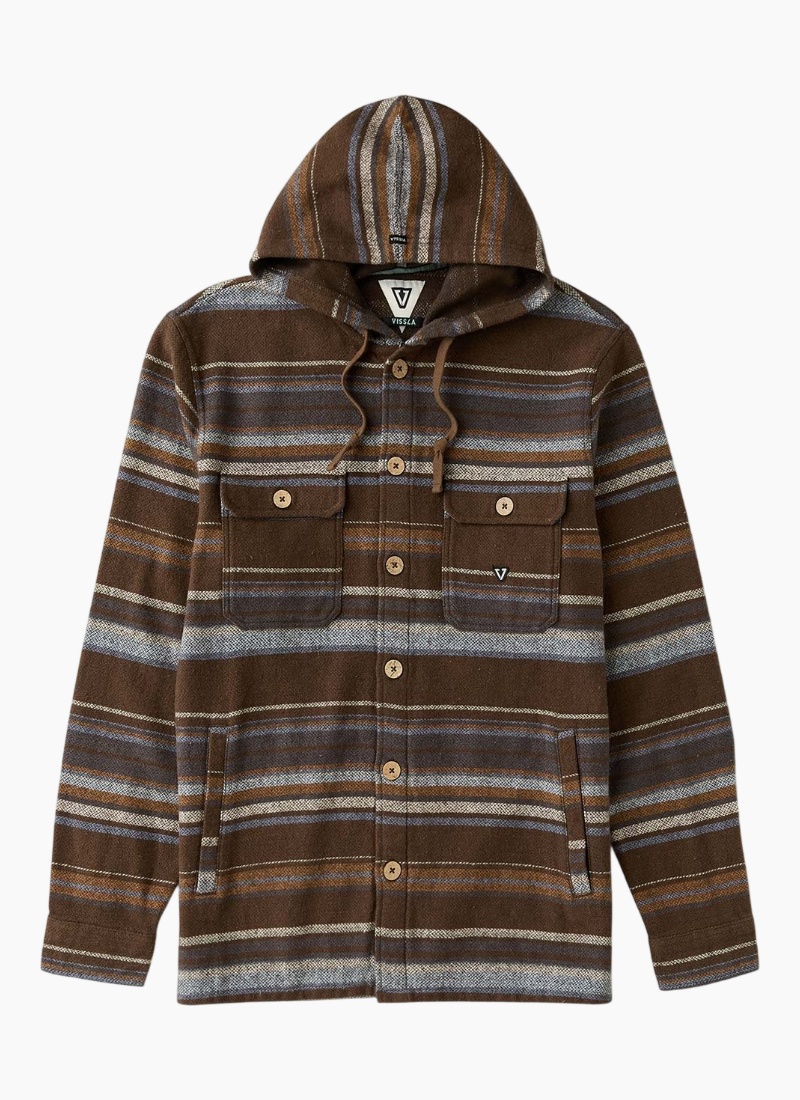 Brushed Heavy Weight Ls Hooded Button Down Jacket. Slanted Welt Pockets And Button Down Chest Patch Pockets. Heavy Garment Wash