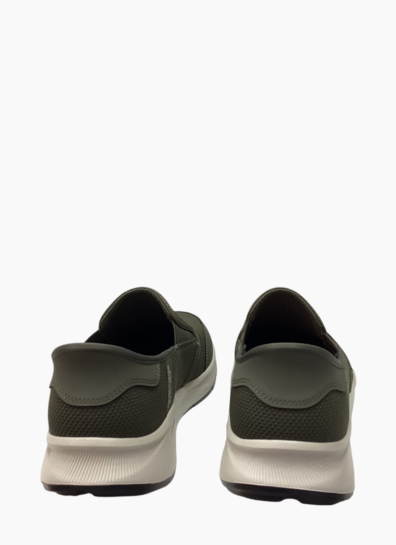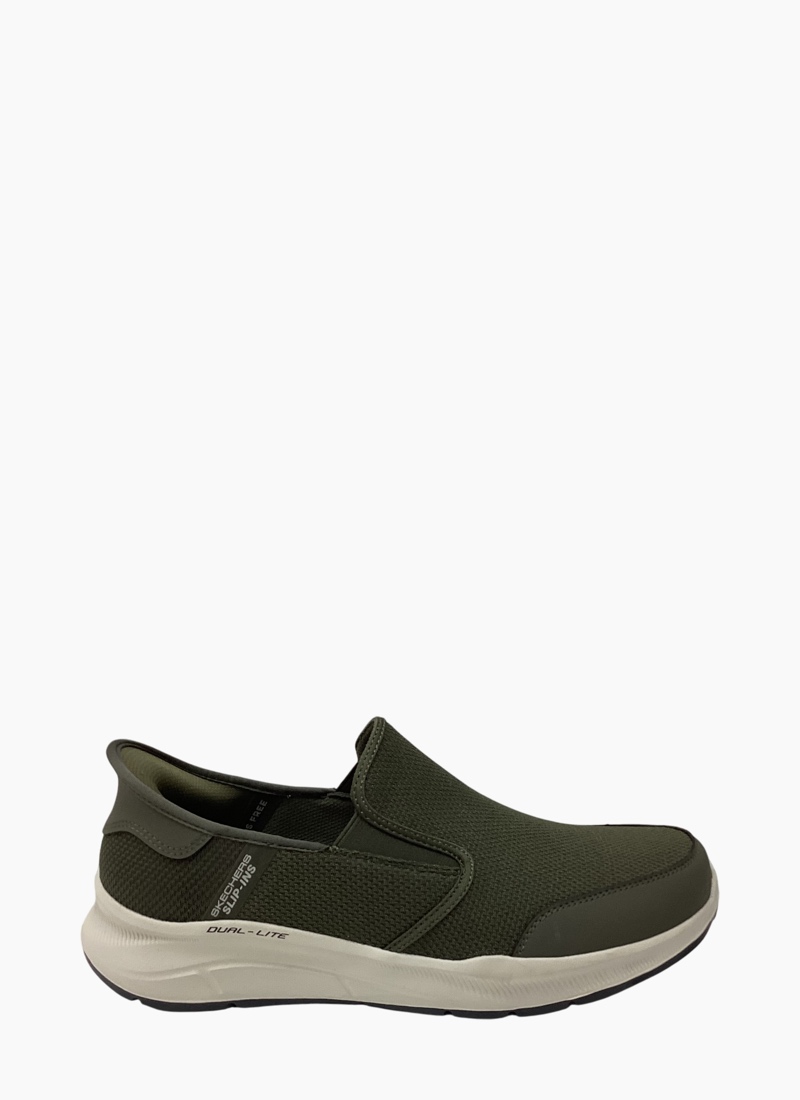 Simply step in and go wearing Skechers Hands Free Slip-ins® Relaxed Fit®: Equalizer 5.0 - Drayze. Designed with our exclusive Heel Pillow™, this laceless slip-on features a yardage mesh upper with synthetic trim and a cushioned Skechers Air-Cooled Memory Foam® comfort insole.