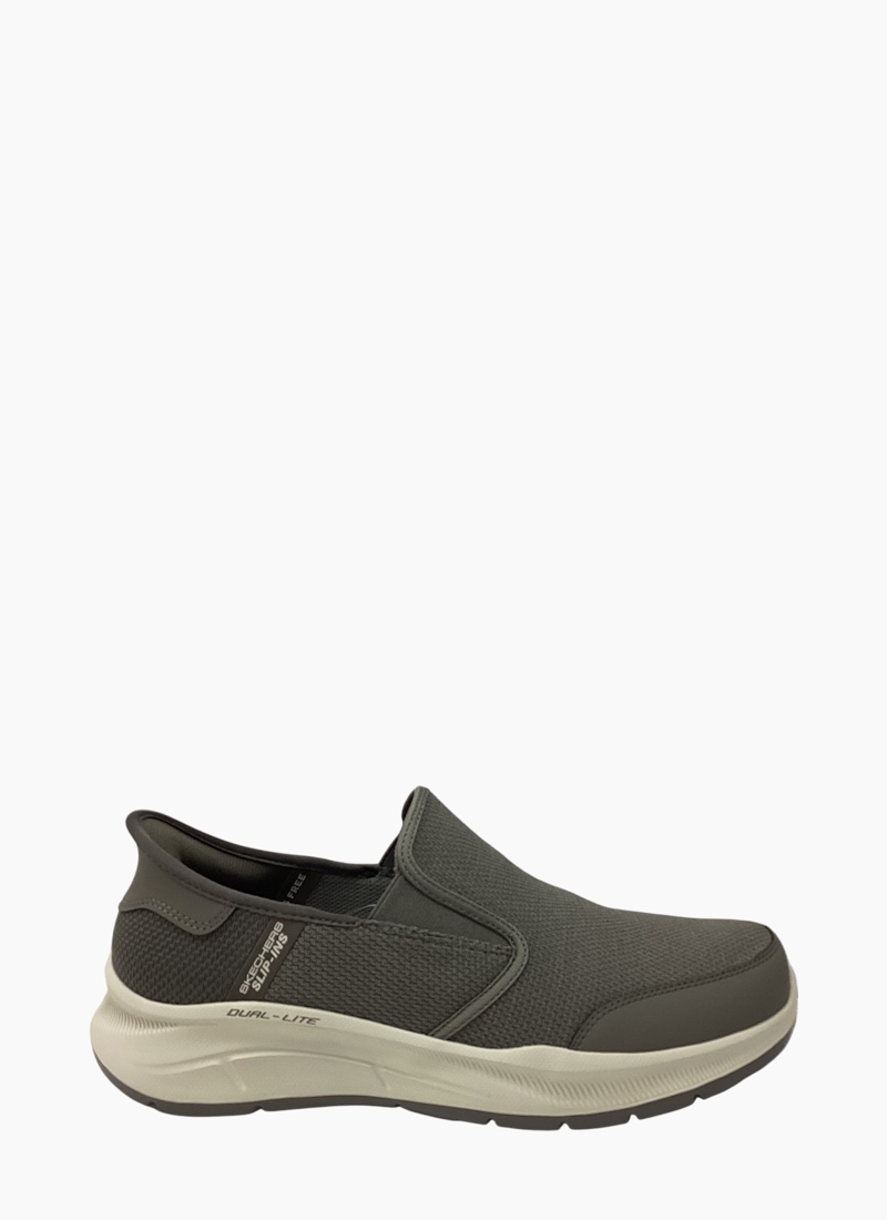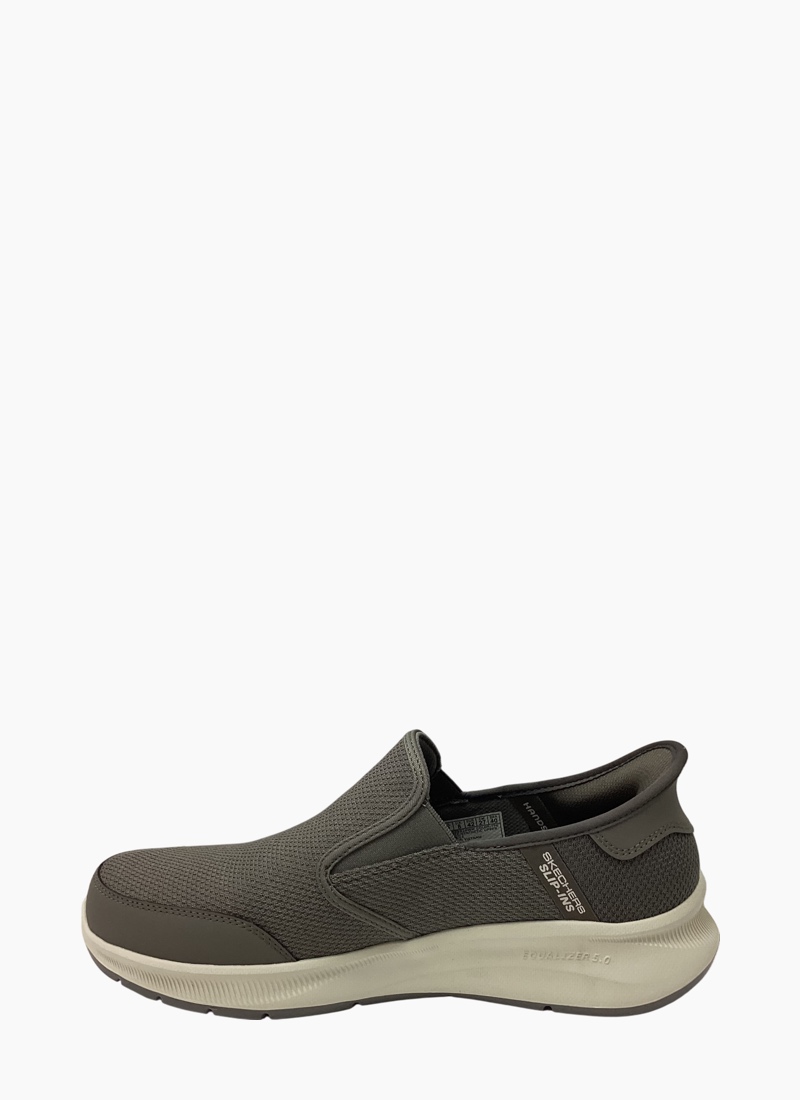 Simply step in and go wearing Skechers Hands Free Slip-ins® Relaxed Fit®: Equalizer 5.0 - Drayze. Designed with our exclusive Heel Pillow™, this laceless slip-on features a yardage mesh upper with synthetic trim and a cushioned Skechers Air-Cooled Memory Foam® comfort insole.