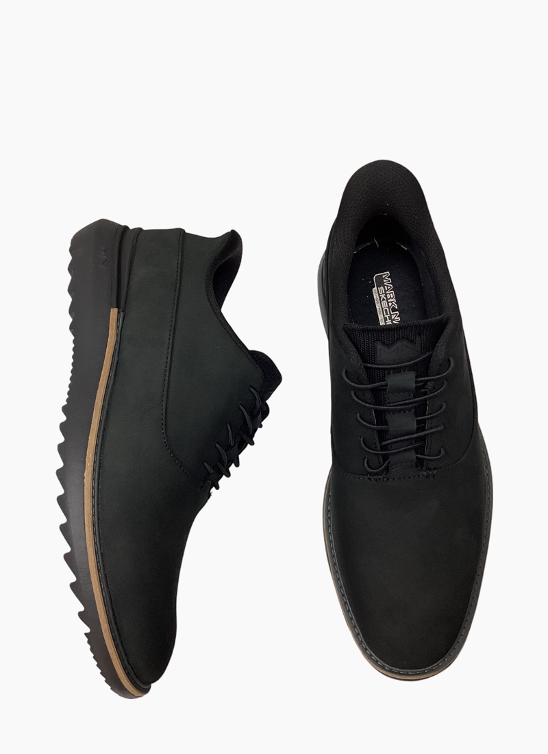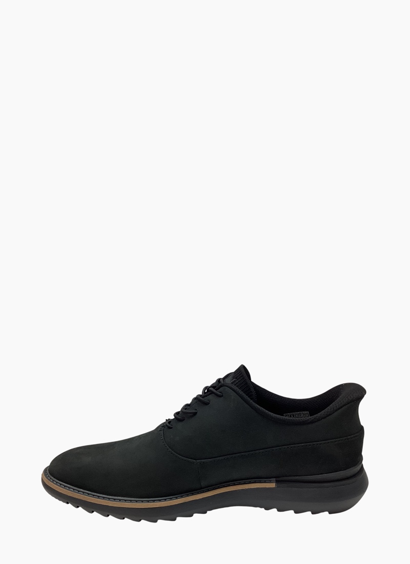 - Classic Oxford style with a leather upper and fixed stretch laces