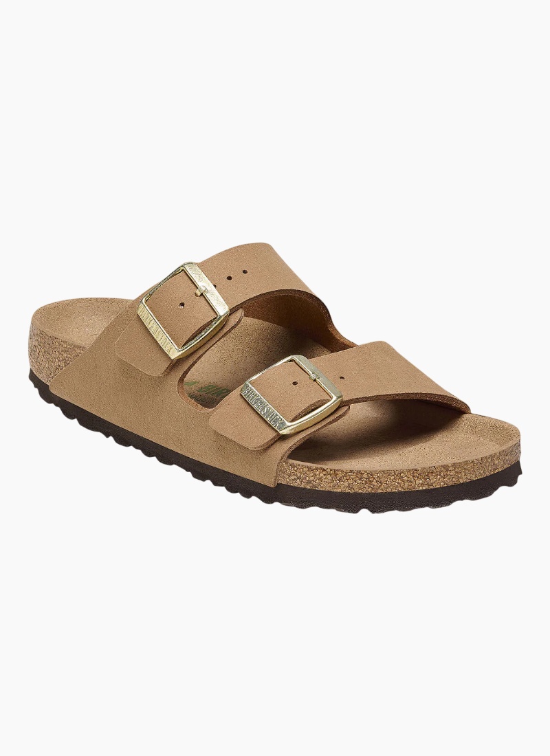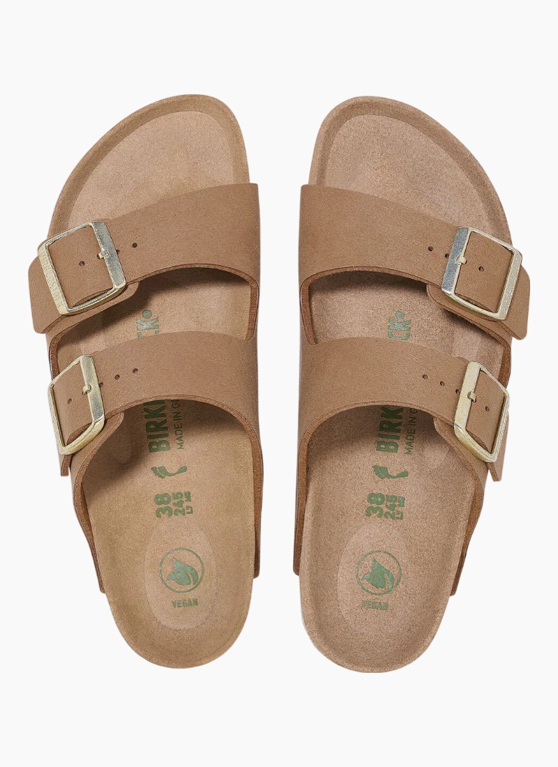 The BIRKENSTOCK Arizona is a genuine classic that has been delighting both men and women with its timeless design for decades. The color-coordinated outsole rounds off the shoe’s look of sophistication. This classic model has been given an update in a new material, with a vegan version now available. It is entirely free of animal products, as verified by independent testing laboratories. The upper is made from a skin-friendly synthetic material. The sandal boasts sophisticated material use with a matte finish that’s reminiscent of natural leather while nevertheless being 100% vegan.