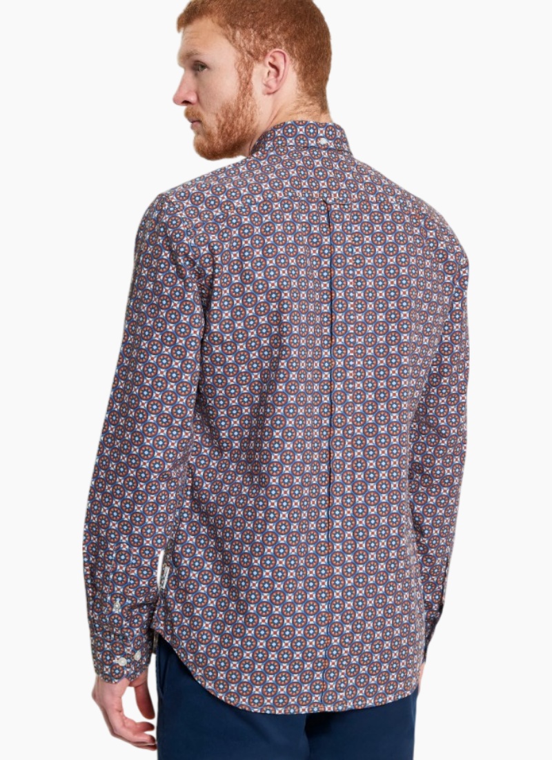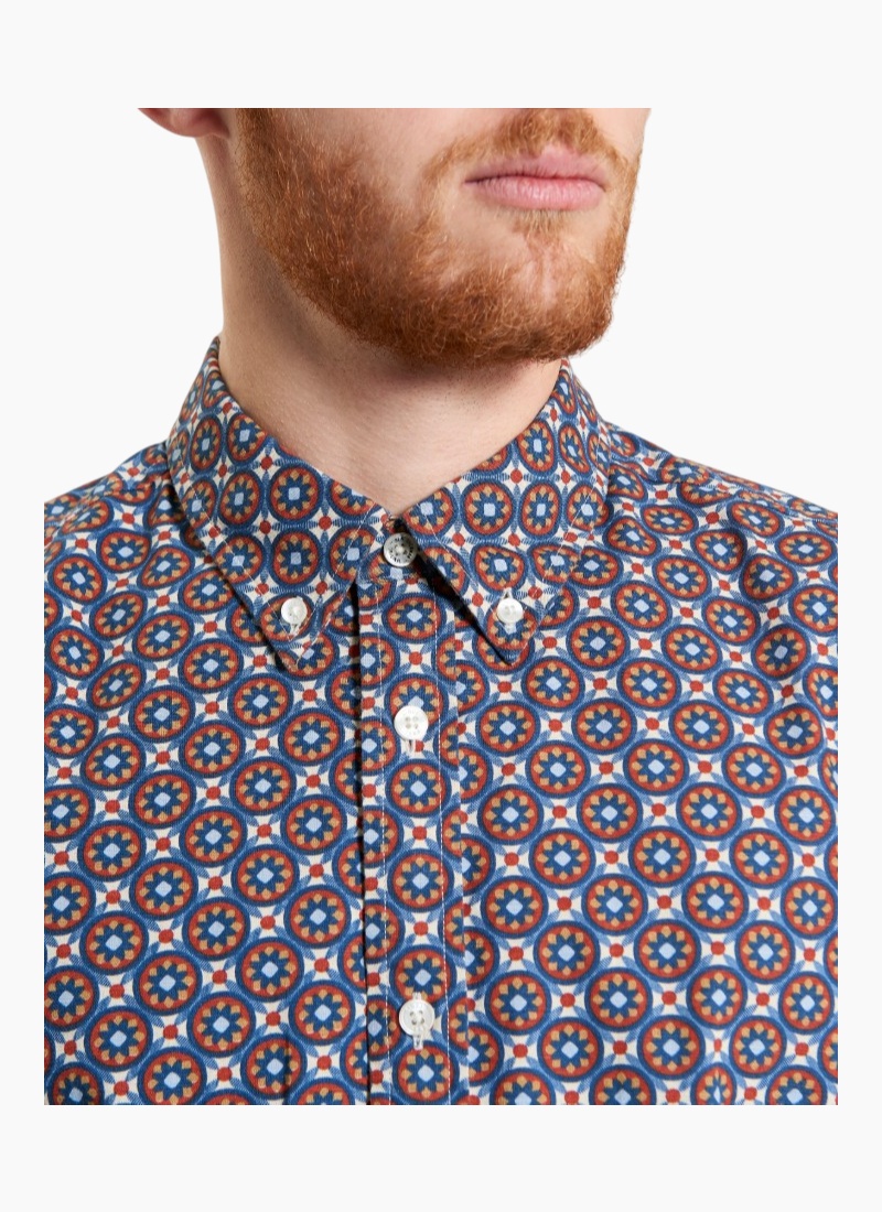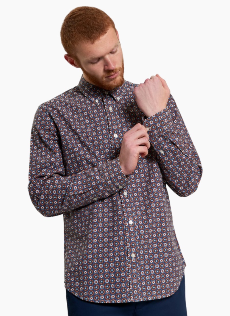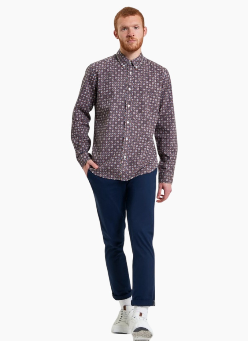 Elevate your smart-casual wardrobe with the Block Foulard Print long-sleeve shirt from Ben Sherman. This eye-catching piece blends pattern and simplicity in equal measure. Wear it with tailored chinos or dark denim for a laid-back evening out — or under a blazer for a creative office setting.Long sleeves Curved hem Two finger button down collar