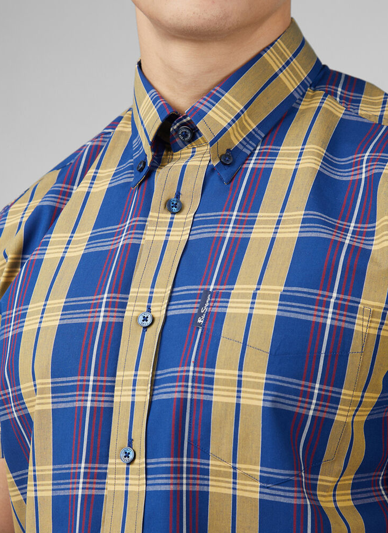 This irregular check shirt features a curved hem and three finger button down collar. Made from 100% cotton, this regular fit shirt is completed with a Ben Sherman branded woven tab on the chest pocket.