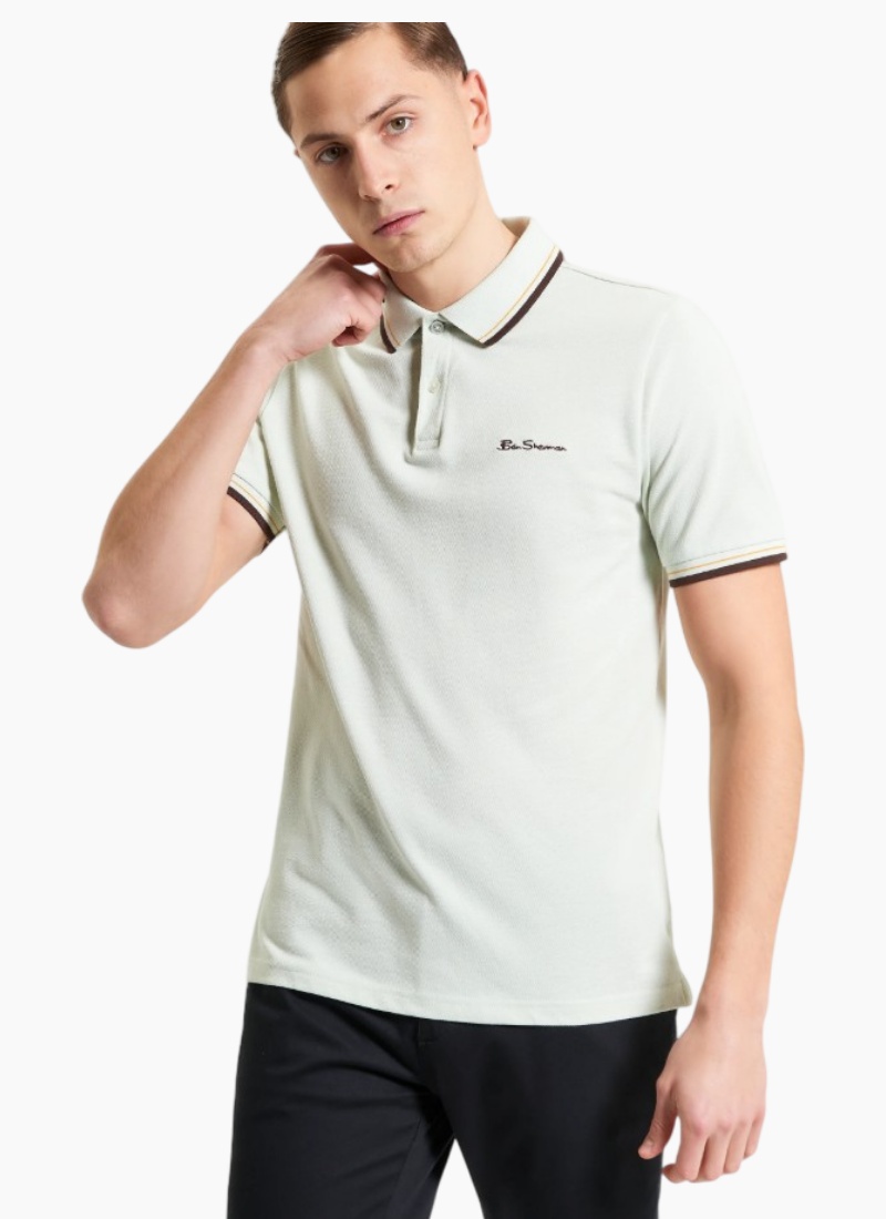 Refined, sustainable, and unmistakably Ben Sherman — the Signature Piqué Polo is your new go-to for polished casual wear. Crafted from 100% Certified Organic Cotton, this polo is built with comfort and conscience in mind. Cut in a regular fit, it offers a balanced silhouette that feels tailored without being tight.Button Polo Regular Fit Contrast detailing