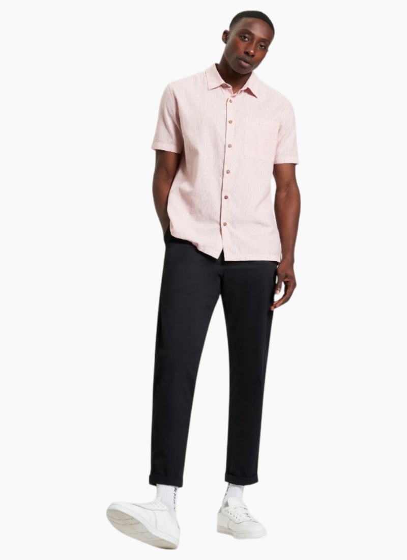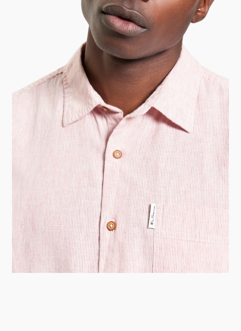 Add a refined stripe to your rotation with the Ticking Stripe Shirt. This short-sleeve classic is made from a cotton–linen blend for a crisp, breathable feel. With a casual point collar, straight hem, and regular fit, it keeps things understated yet sharp. Finished with the signature Ben Sherman woven label at the chest pocket, it’s a smart, stylish essential for warm-weather looks.Short sleeves Regular fit Casual point collar
