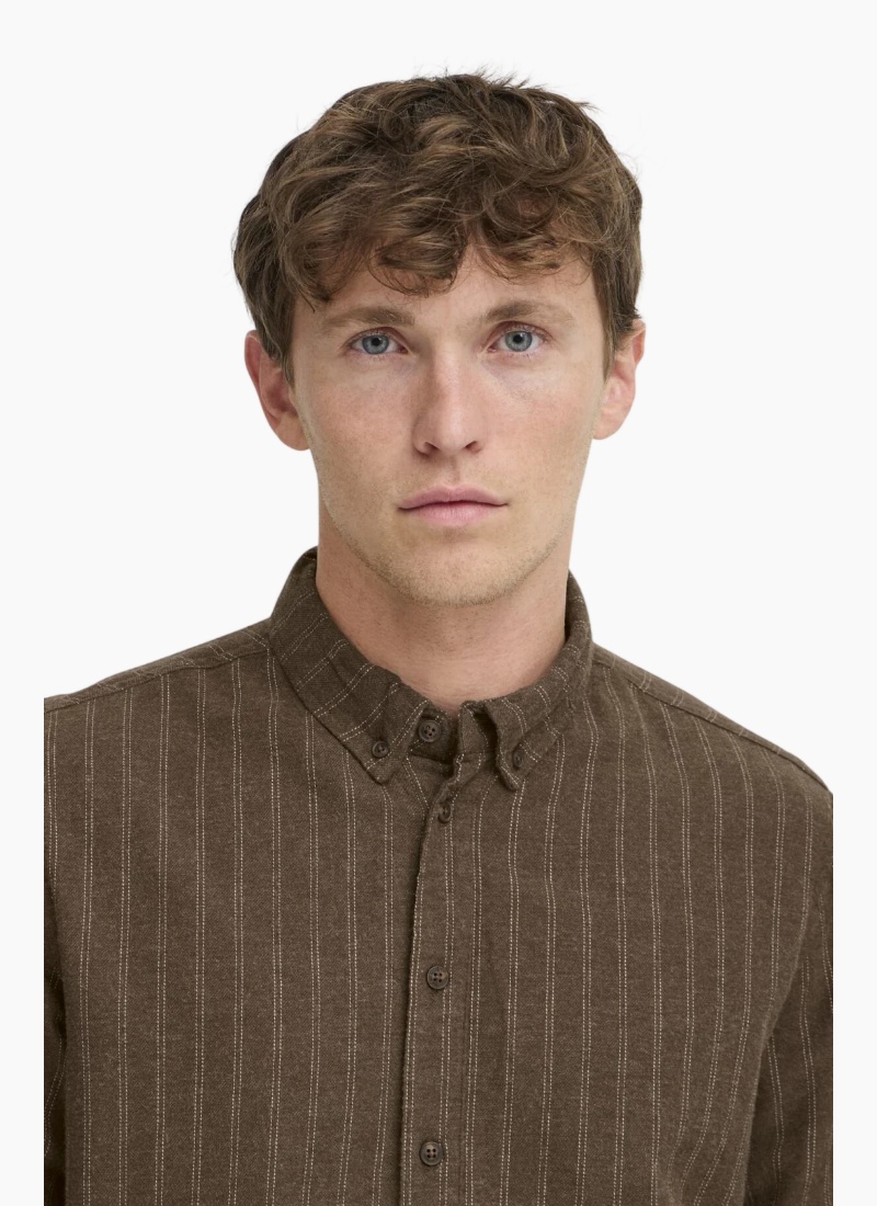 - A refined brown striped shirt cut from 100% Cotton flannel