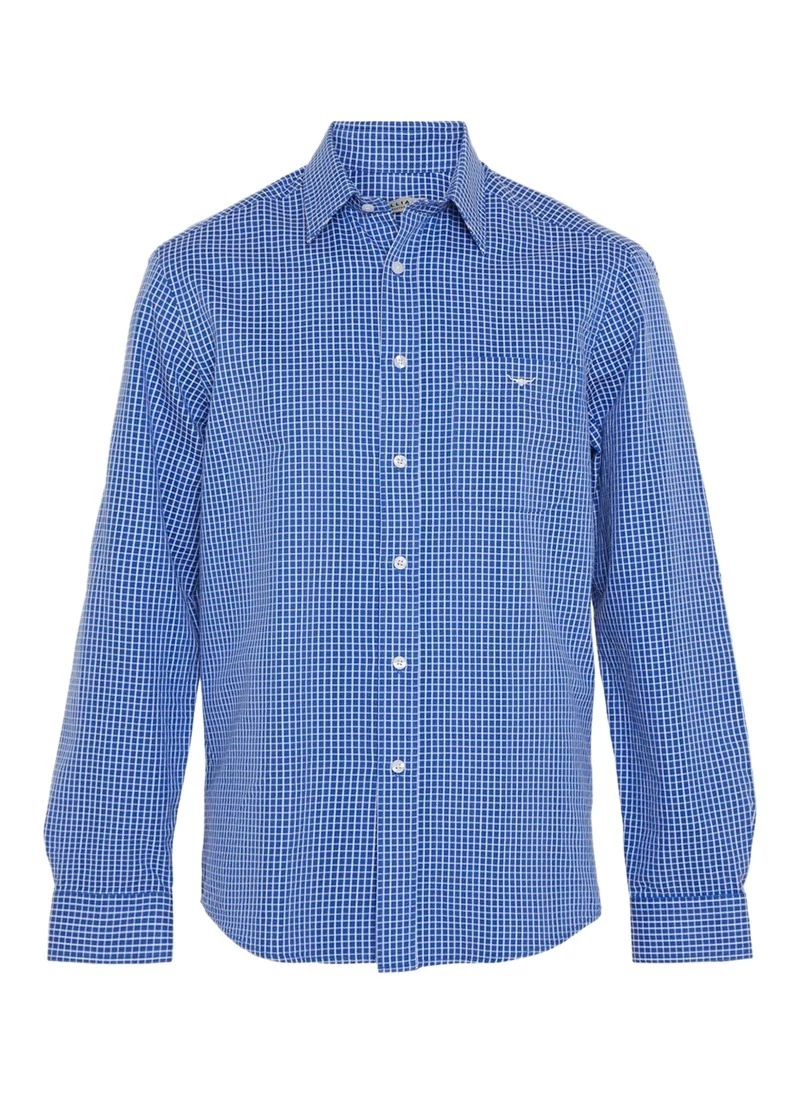 The Collins Shirt is a regular fit, long sleeve button through shirt in a small twill check
