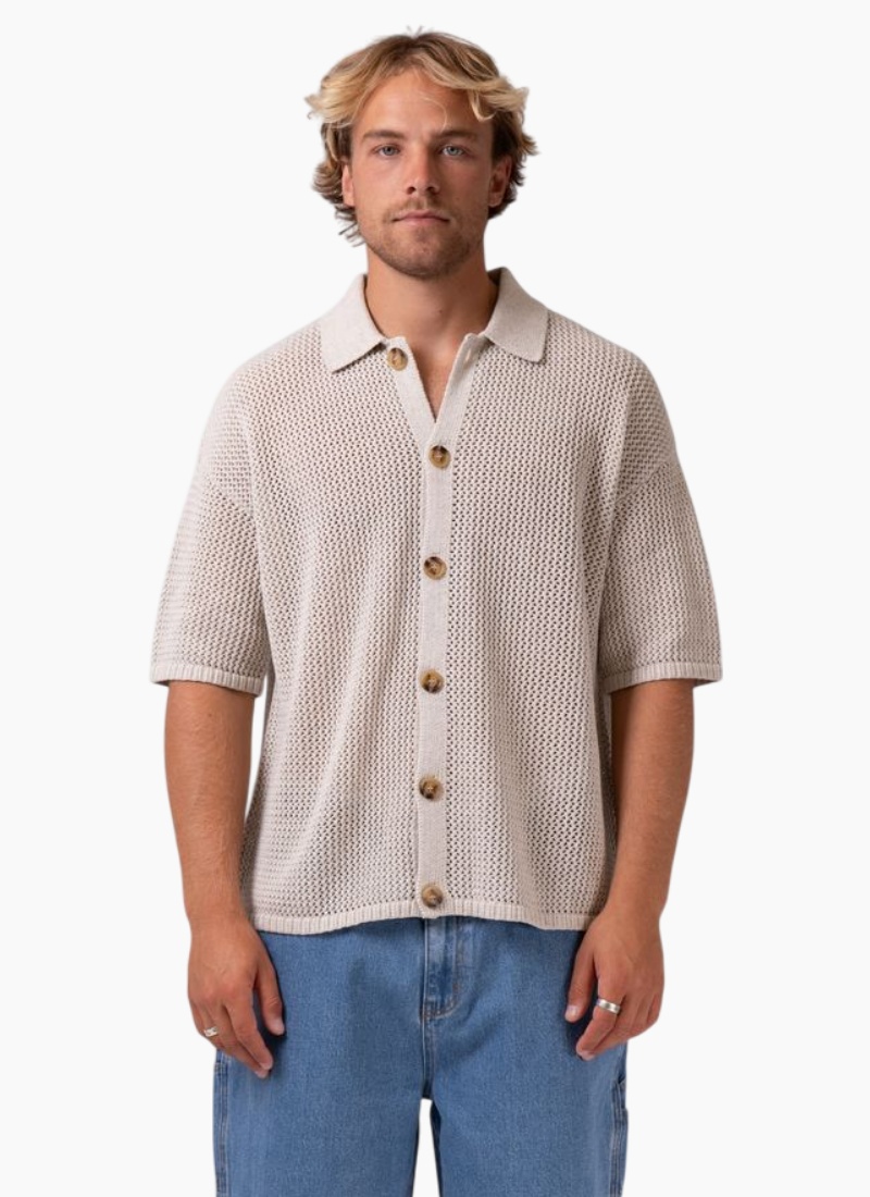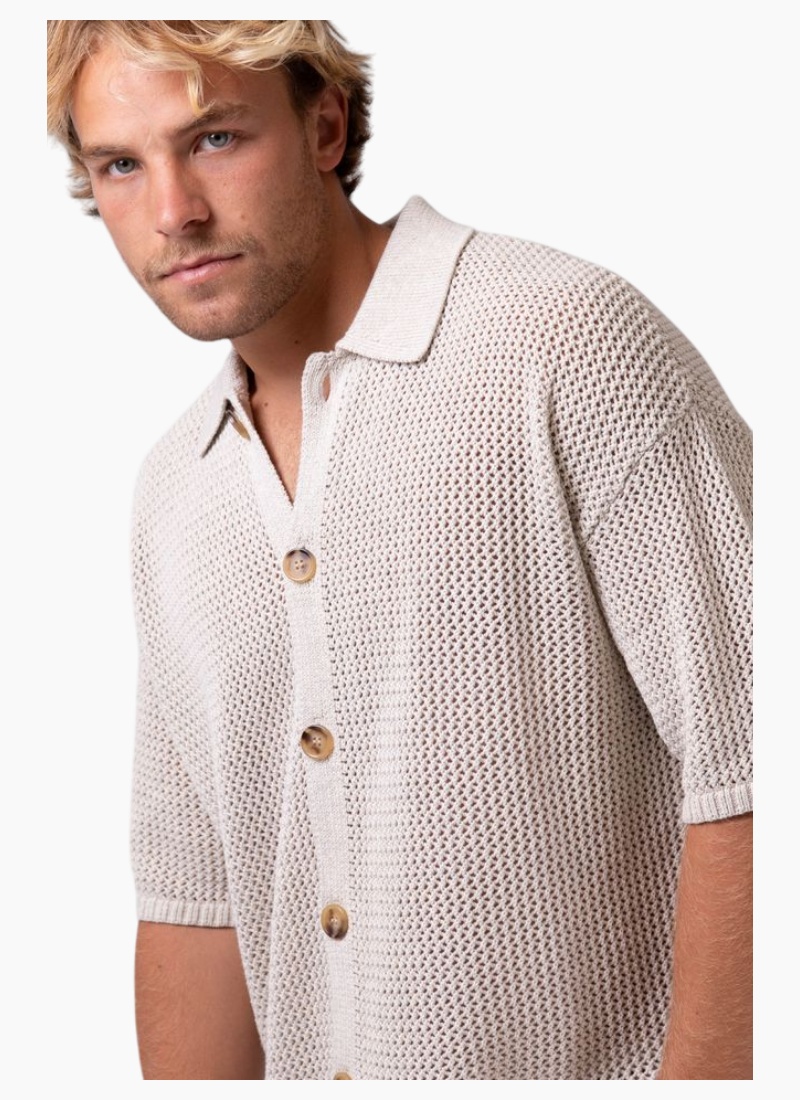 Introducing the CROCHET SHIRT from RPM. A relaxed, breathable men's shirt in a cream crochet knit that elevates warm‑weather style.