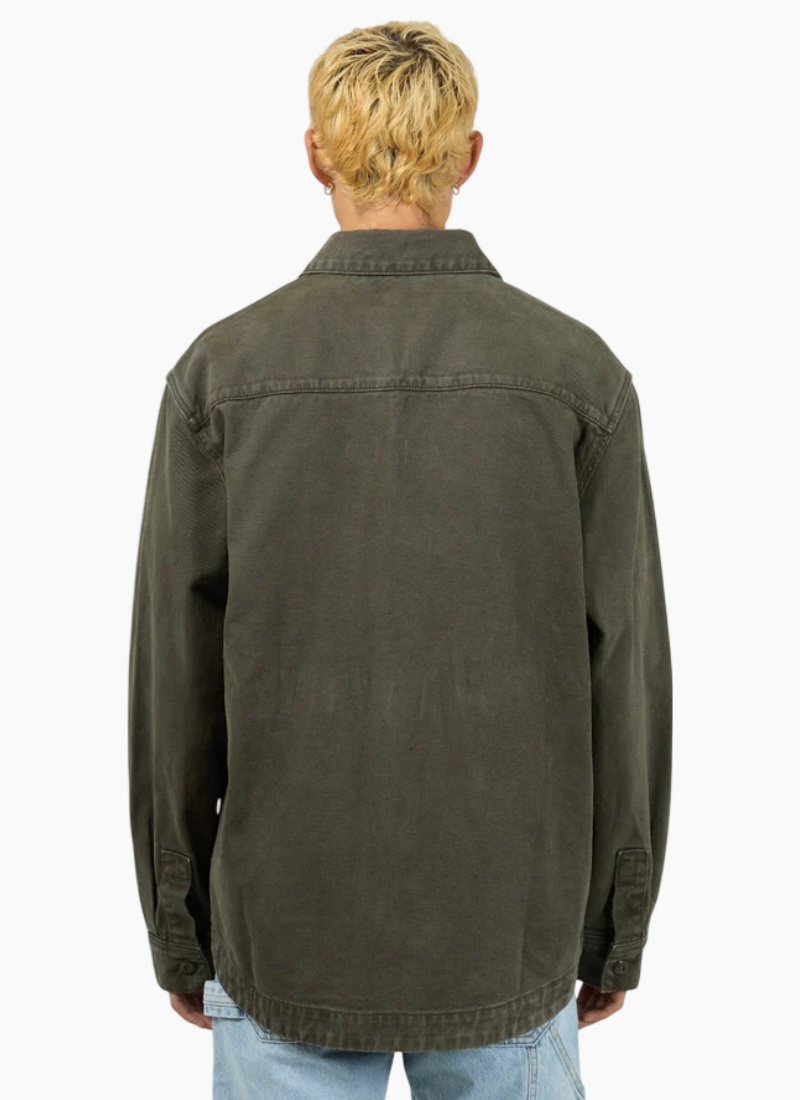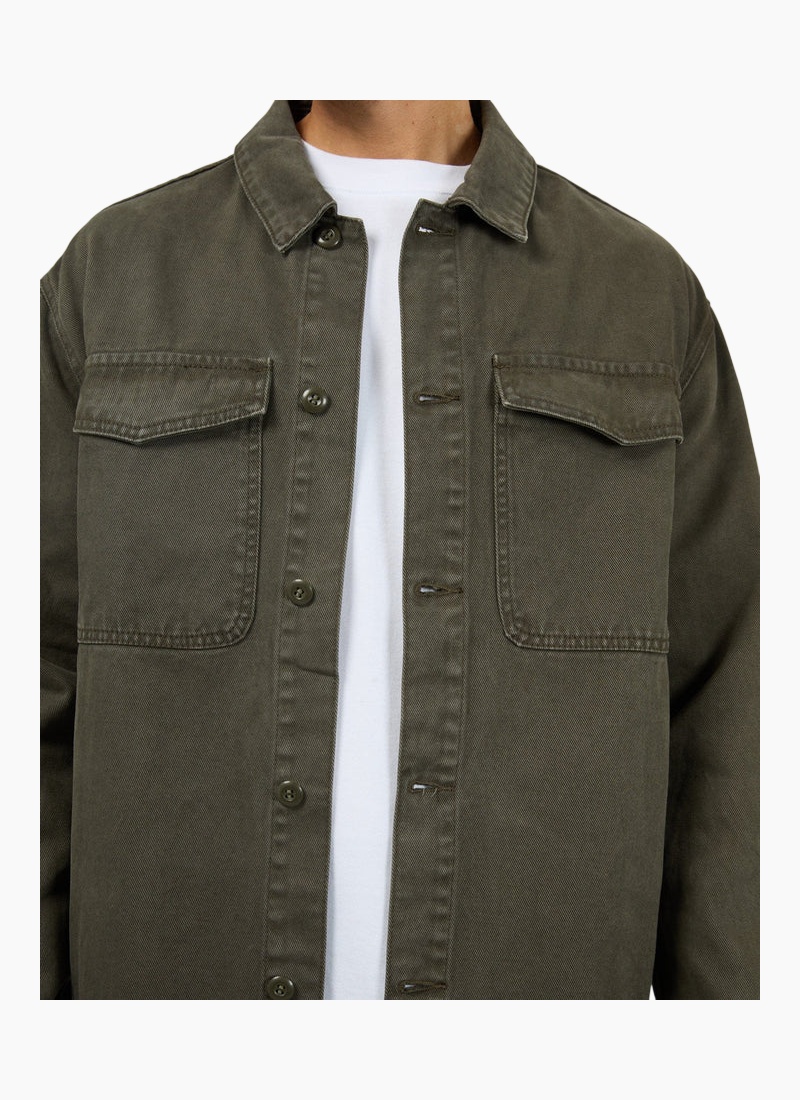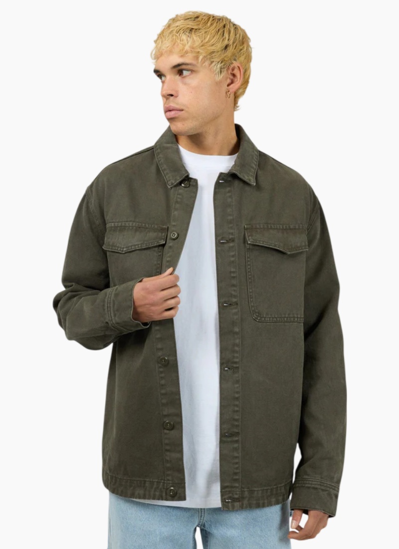 - Button-front closure with twin chest pockets for a utilitarian edge