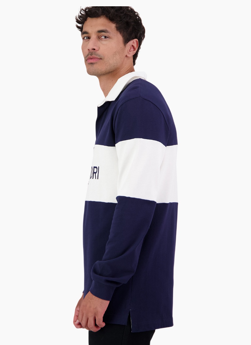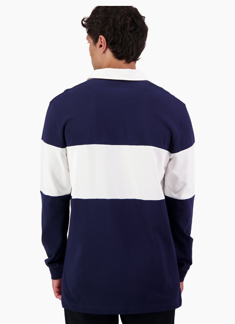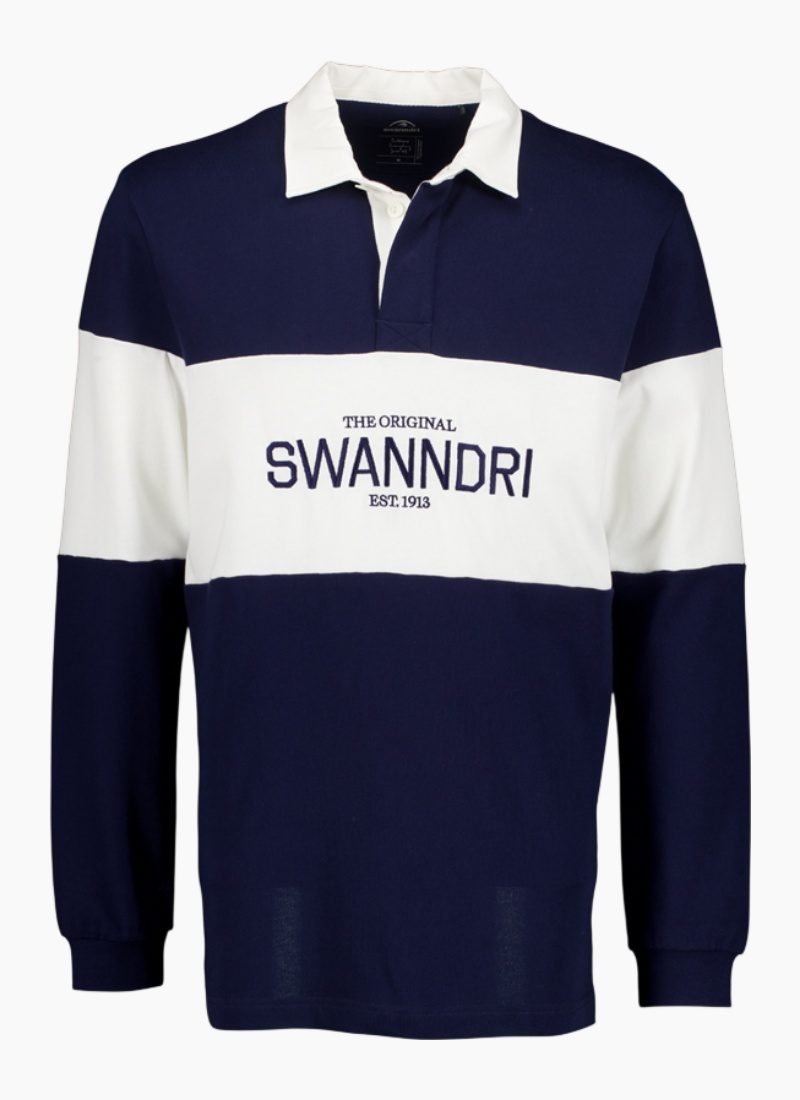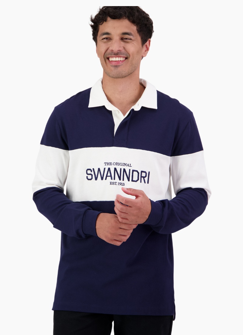 The Men's Leeston Long Sleeve Rugby Top in Navy and White is a classic rugby style built for durability and everyday comfort. Made from thick 280gsm cotton fabric, it has a substantial feel that wears well over time. The heavy cotton drill collar adds structure and a traditional finish, giving the top a timeless look. Designed to be worn hard, this is a reliable rugby top that works just as well off the field as it does layered up on cooler days. Main: 100% cotton, 280gsm Heavy drill cotton collar and placket Rubber buttons Swanndri orginal embroidery