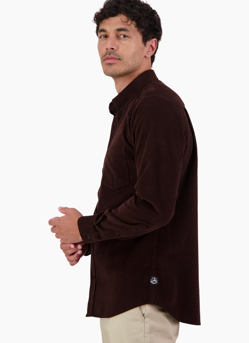 Introducing the Ranfurly Shirt from Swanndri. This men's shirt is crafted in a rich dark brown corduroy for a timeless, rugged look that suits both city and country wardrobes.