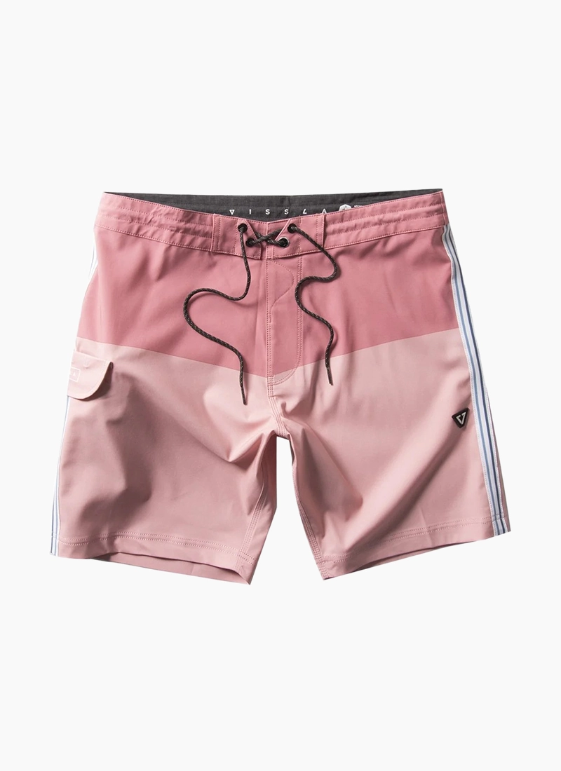 The best part about surfing is The Trip. We've got the trunks to help you out along the way. Sophisticated 4-Way stretch boardshort made with recycled poly Repreve and coconut fibers. Solid fabric with contrast side seam taping back pocket and integrated key rope. 17.5" outseam.