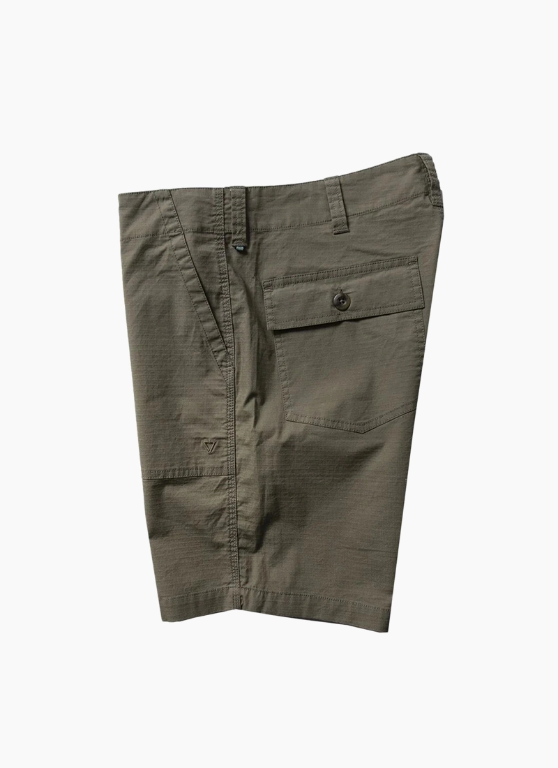 The Drills walkshort is made to be put through the drills- They're made in a durable ripstop fabric with subtle stretch. Ready to wear anytime, anywhere. The Drill Eco short is made with sustainable organic cotton stretch ripstop fabric. Style features button down close back pocket and oversize square panel slash patch side pockets. Functional center front button closure and locking metal zipper at fly.