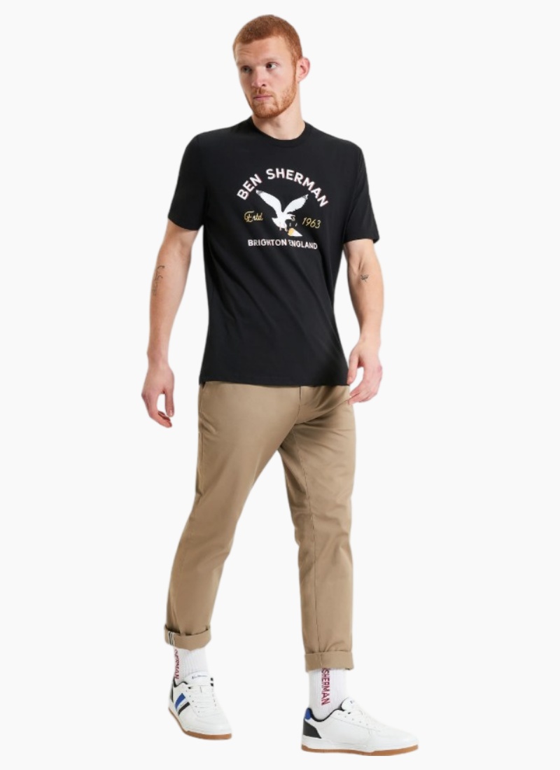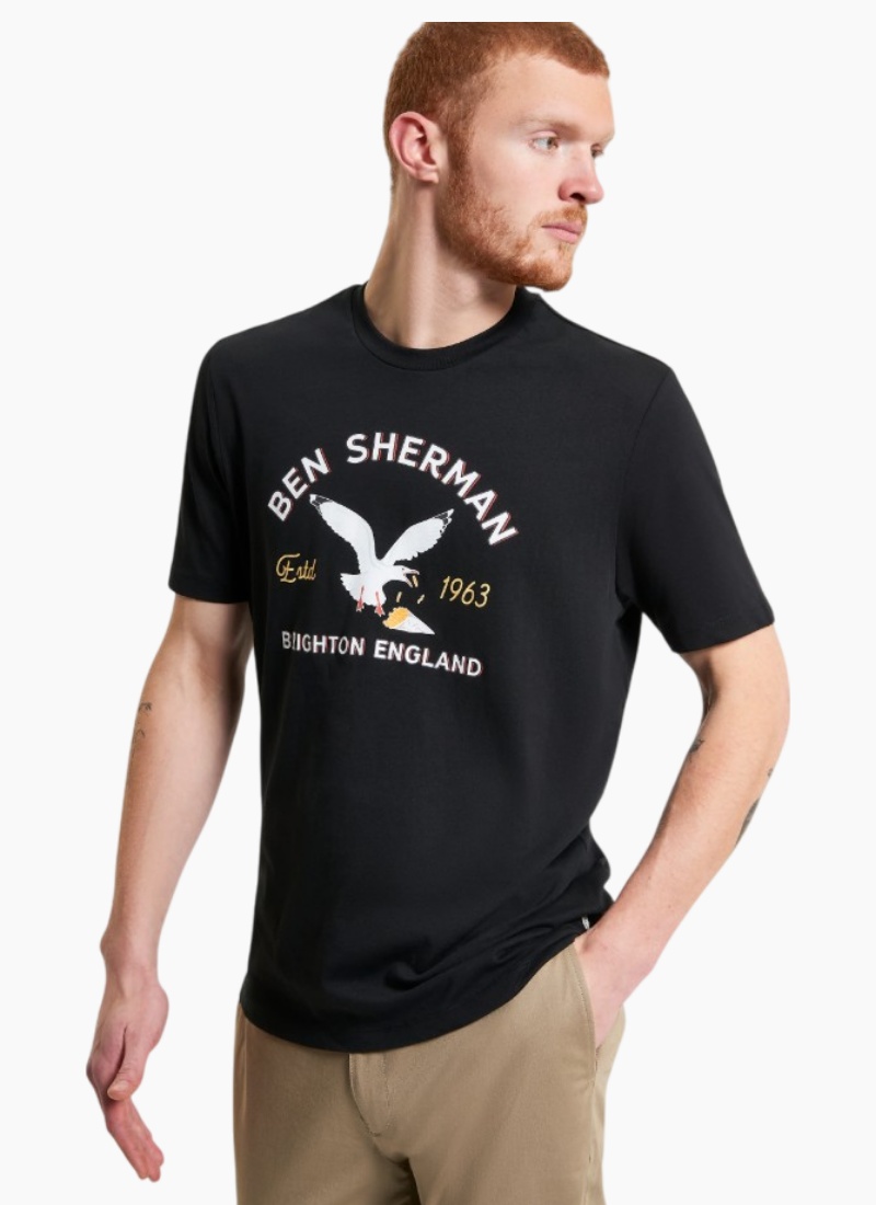 Embrace coastal charm with the Brighton Seagull tee by Ben Sherman. Tailored in a regular fit from 100% GOTS-certified organic cotton, it’s a sustainable staple that delivers softness, breathability, and effortless wear. At the chest, a Brighton-inspired print adds character and context—a subtle nod to seaside life and heritage storytelling.Regular fit Brighton inspired chest print Organic cotton