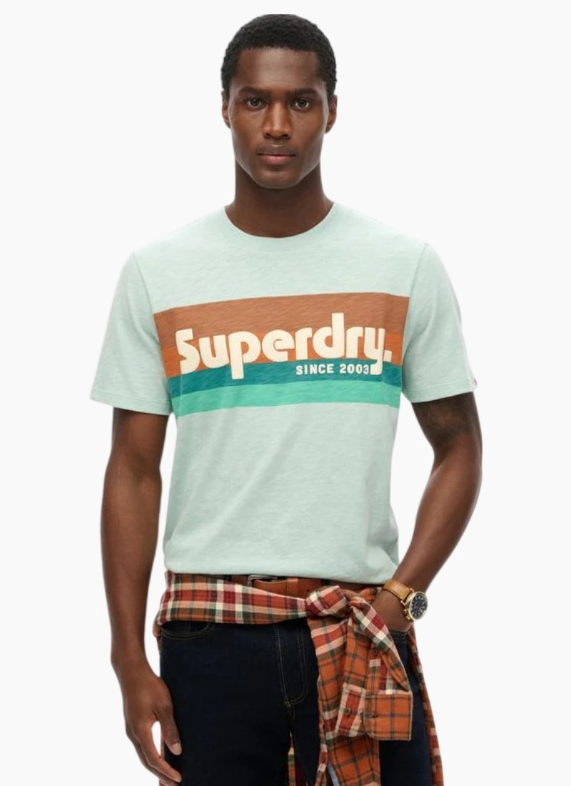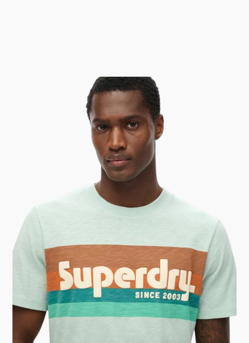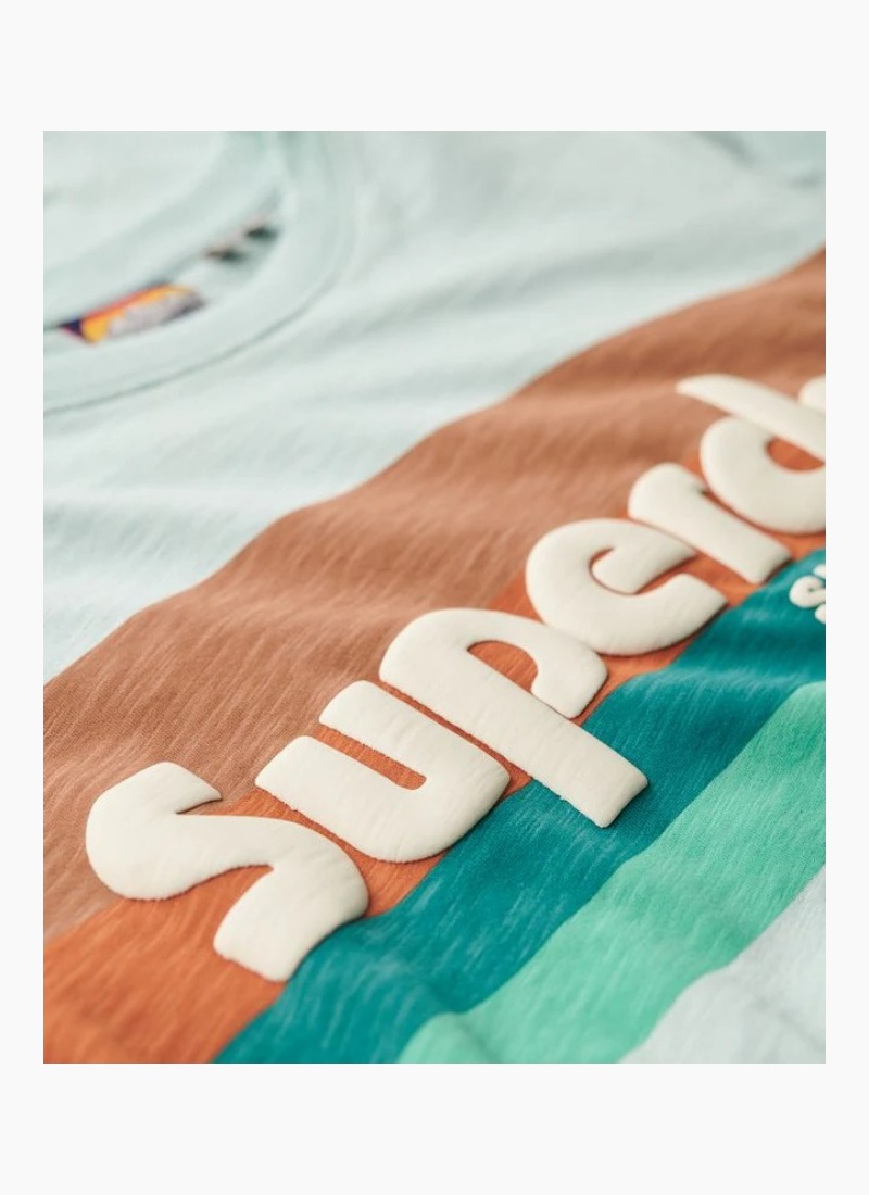 Show off your authentic style in the best way possible this season with our Terrain Logo Stripe Relaxed T-Shirt. Curated with a textured printed text on the chest, it's the perfect balance of retro and classic fashion, whilst the bold style of the graphics will allow you to effortlessly introduce colour to your daily looks.Relaxed fit – the classic Superdry fit. Not too slim, not too loose, just right. Go for your normal size Short sleeves Ribbed crew neckline Printed graphic text across the chest Signature tab on the sleeve Material: 100% Cotton Model wears M