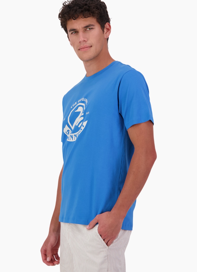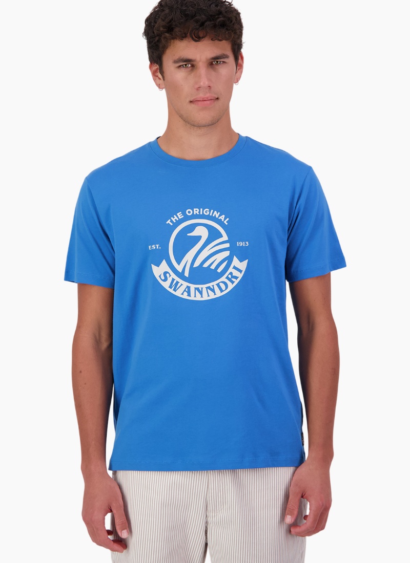 Introducing the Original Tee from Swanndri. A classic men's tee in a vibrant royal blue, designed for everyday wear.