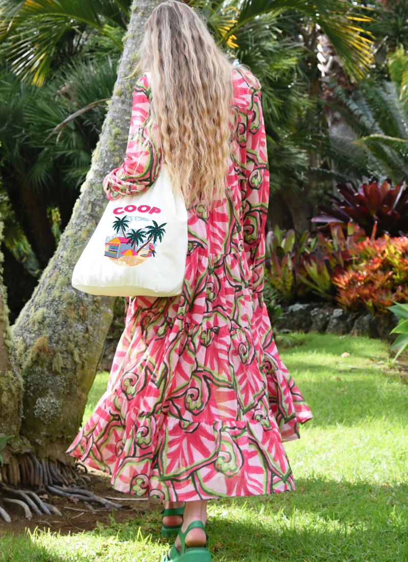 - Features bright pink COOP artwork and palm motifs for a fun, tropical colour pop