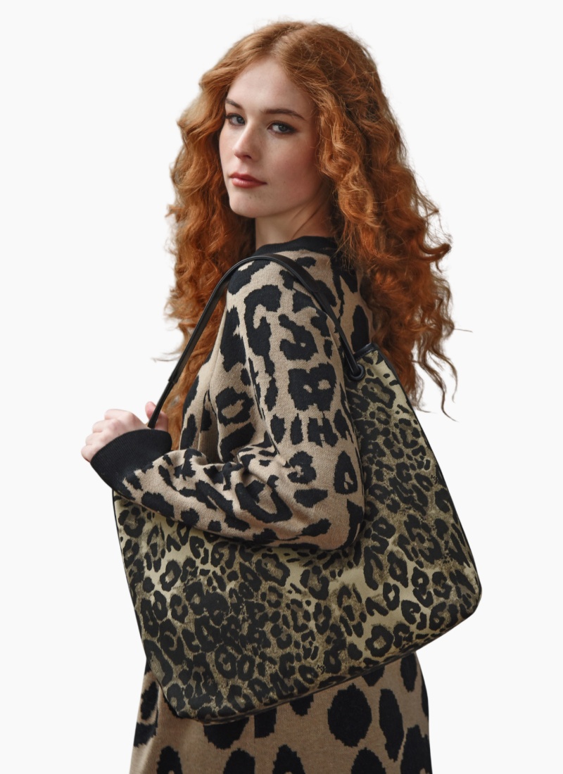 Carry your essentials in style with the 'Purse is Better' bag, crafted from durable 'Carry Me Home' heavyweight cotton twill. Featuring a bold leopard print, a secure snap-button closure, and a luxe faux leather strap, it’s both practical and fashion-forward. Fully lined for added polish, this bag is the perfect companion for everyday adventures with a touch of wild flair. • Heavy weight cotton twill • Snap button closure • Interior pocket and zip pocket • Faux leather strap • Lined inside