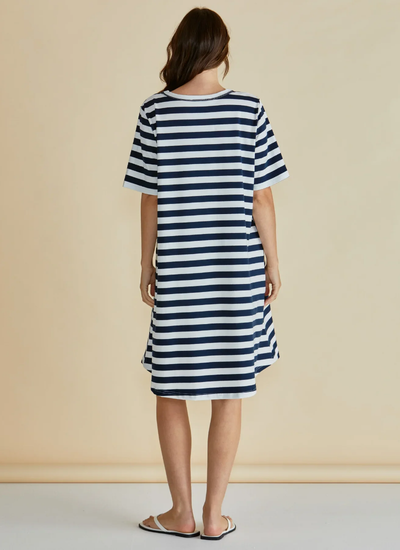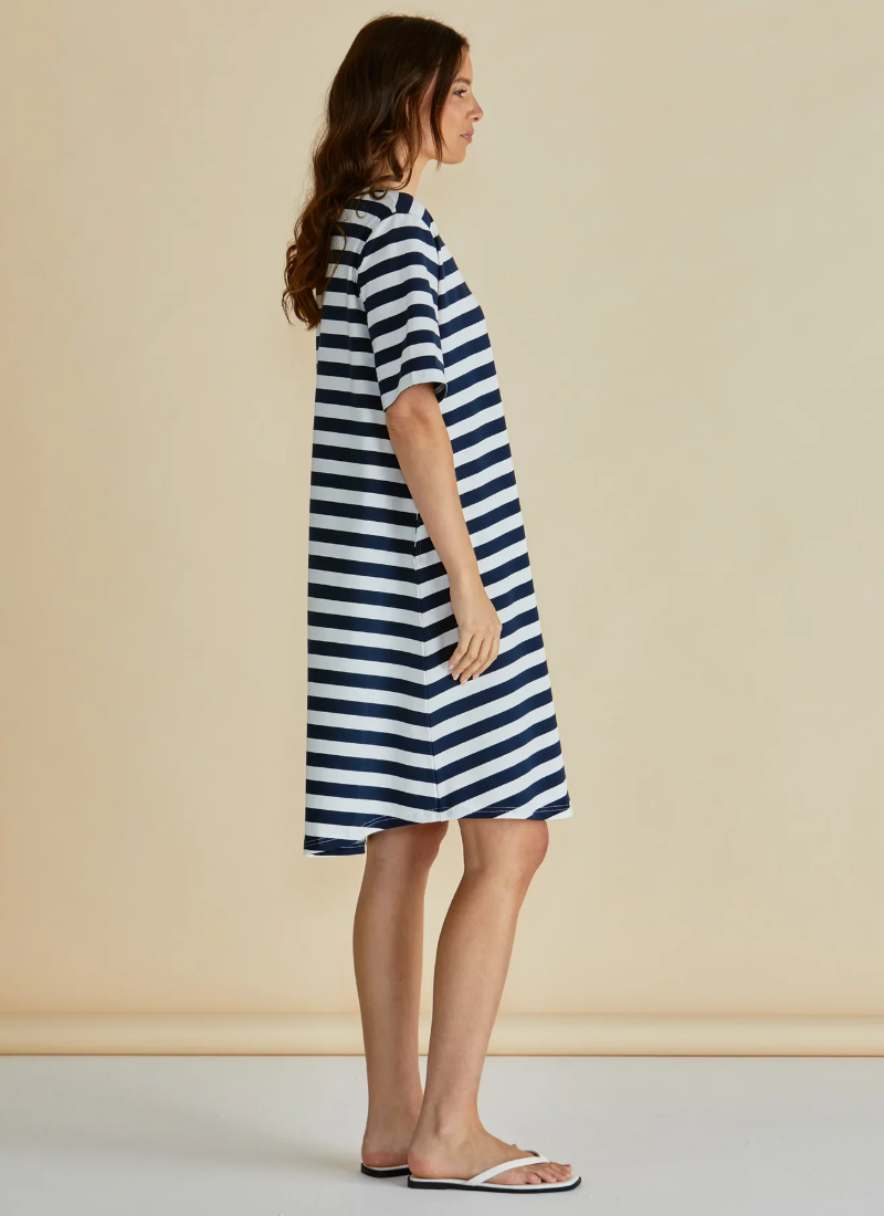 The Eloise T-Shirt Dress redefines laid-back sophistication. With its round neckline, midi length and relaxed fit, it’s the perfect balance of ease and elegance. Elongated short sleeves and pockets add thoughtful practicality. An elevated essential for transeasonal wear, ideal for any occasion.