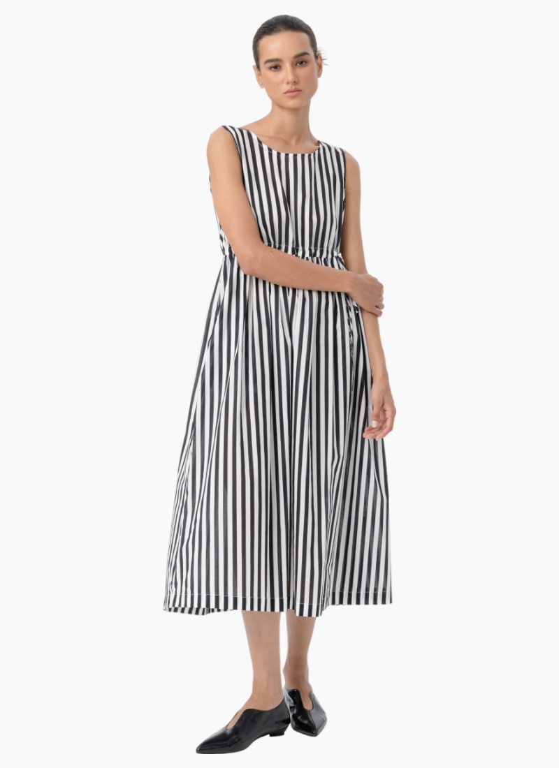 - Black Stripe from Blacklist. This sleeveless, midi Casual/Day Dress pairs relaxed ease with a striking stripe motif.