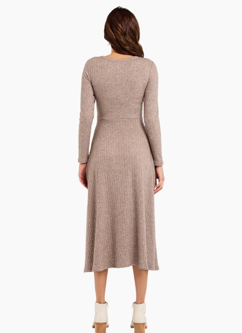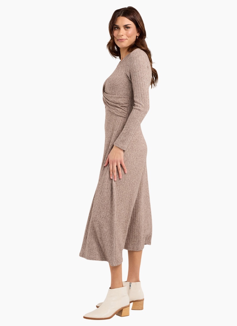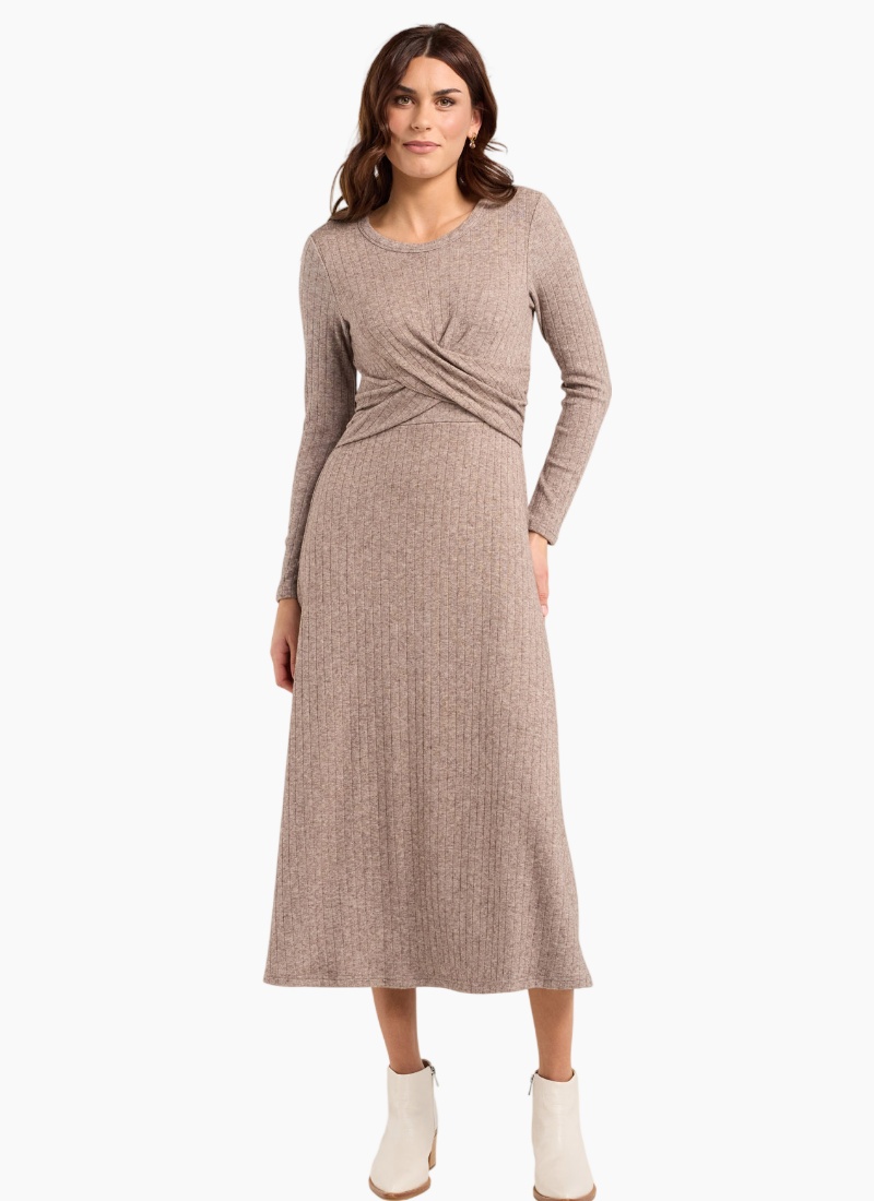 Introducing the Blair Twist Front Dress from Blackstone - a dress that’s effortlessly flattering with a chic twist-front detail that cinches the waist and adds a little something special to your everyday look. It's soft drape and clean silhouette make it perfect for brunch, the office, or a night out when you want to feel put-together yet comfortable. Twist front feature Crew neckline Ribbed knit fabric