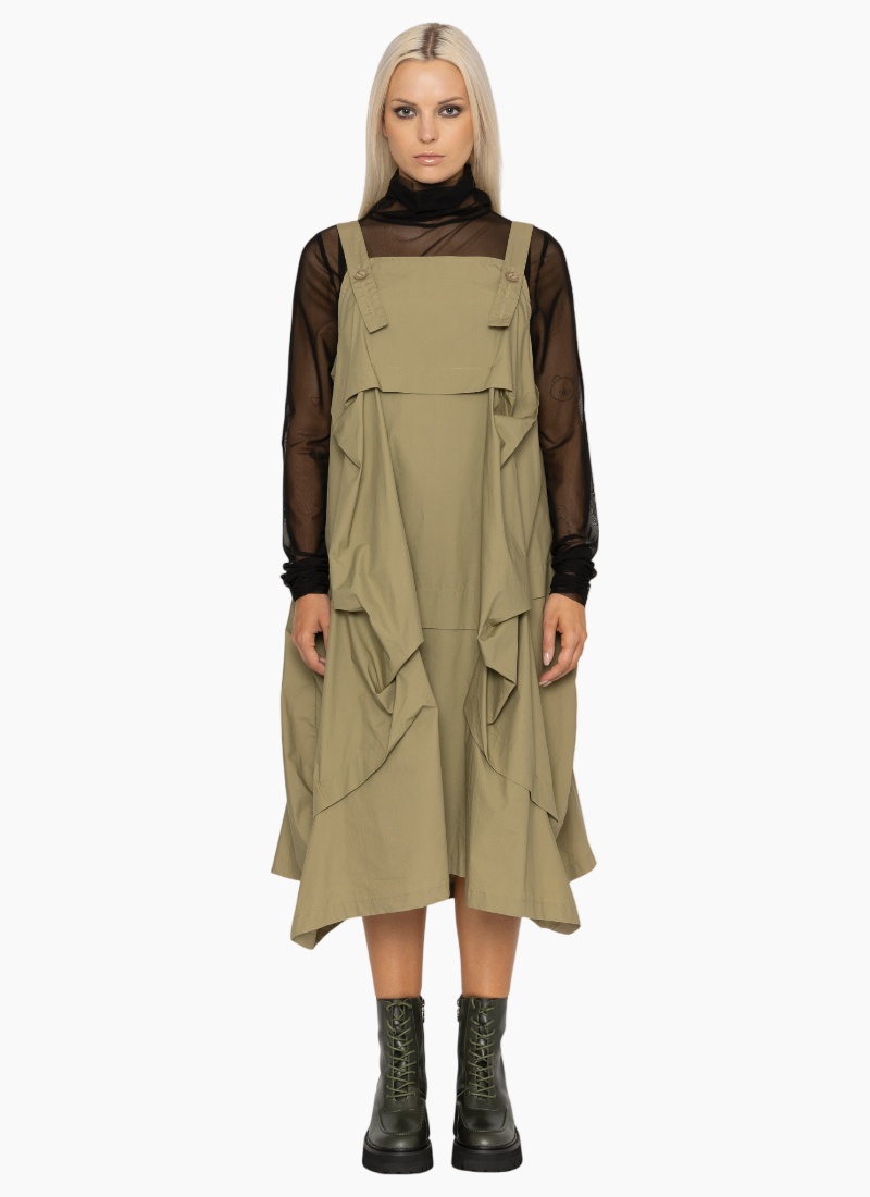 - A Casual/Day Dresses staple in versatile khaki, featuring a square bib and button-fastening shoulder straps