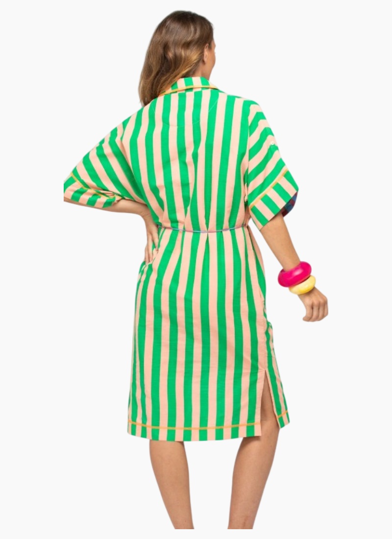 The Boom Shankar Maui Shirt Dress is a sophisticated and versatile dress that will see you through beach to brunch in style!100% cotton, covered front buttons, fabric belt tie, below-knee length, structured collar and adjustable length sleeves with tabs. This piece has been lovingly hand printed by our Indian artisan partners. You may notice irregularities in this print that are part of the design. These characteristics make your garment unique and fabulous. Fit notes: Relaxed fit.
