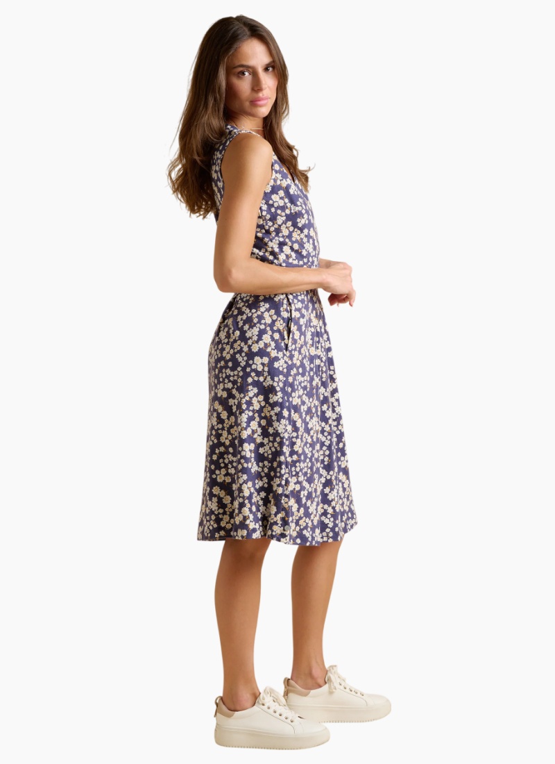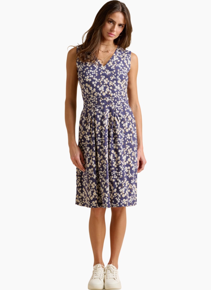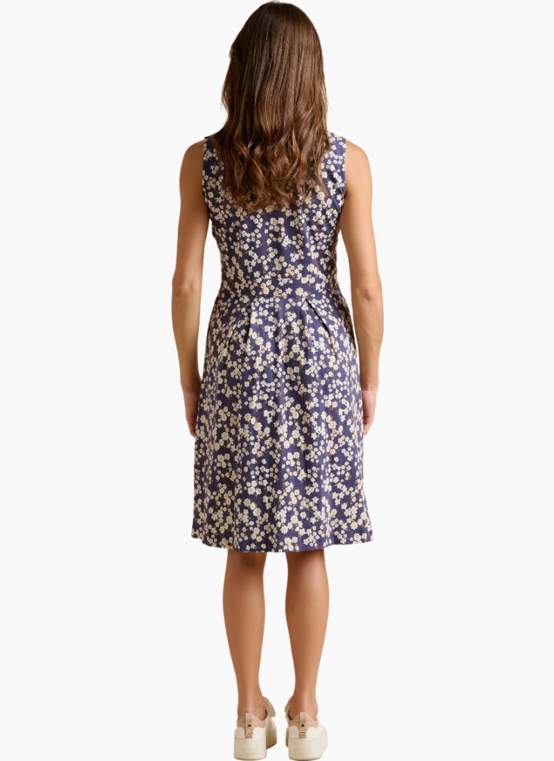 - Printed with delicate white and yellow daisies on a navy background for a timeless, wearable colourway