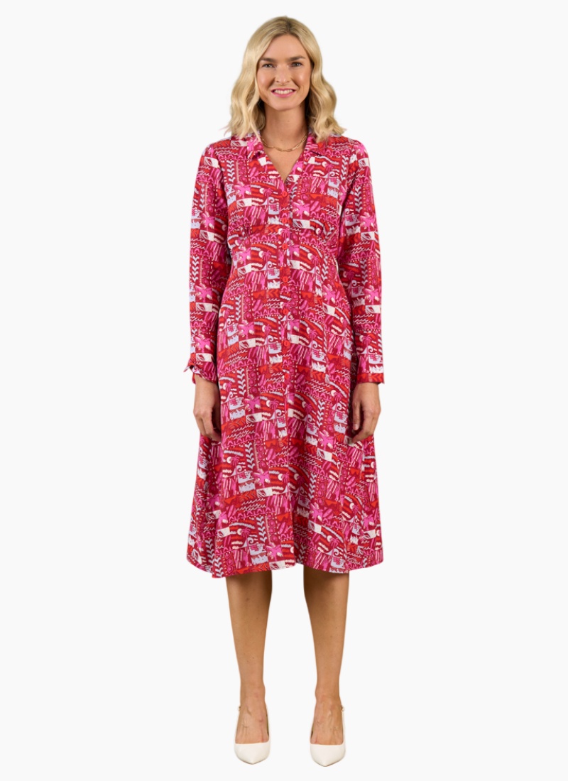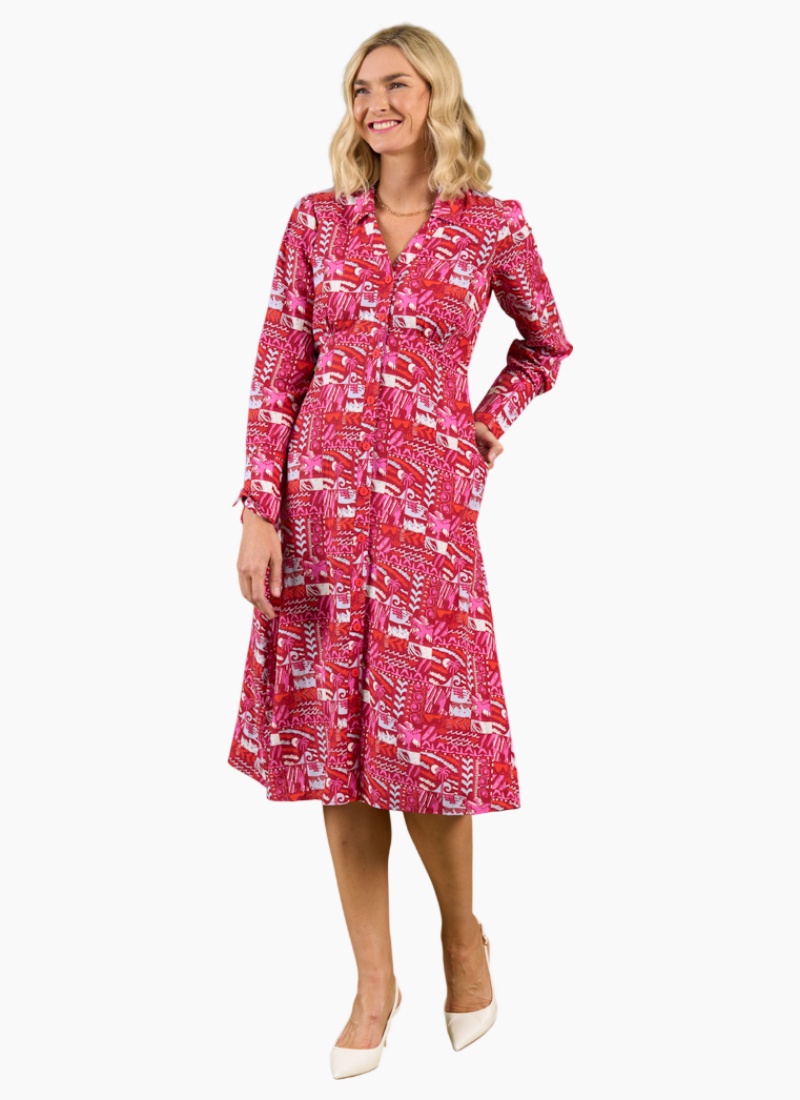 Introducing the Britomart Dress Sea Scape from Charlie Jane. This vibrant Casual/Day Dress in a pink sea‑scape print is designed for effortless everyday elegance.