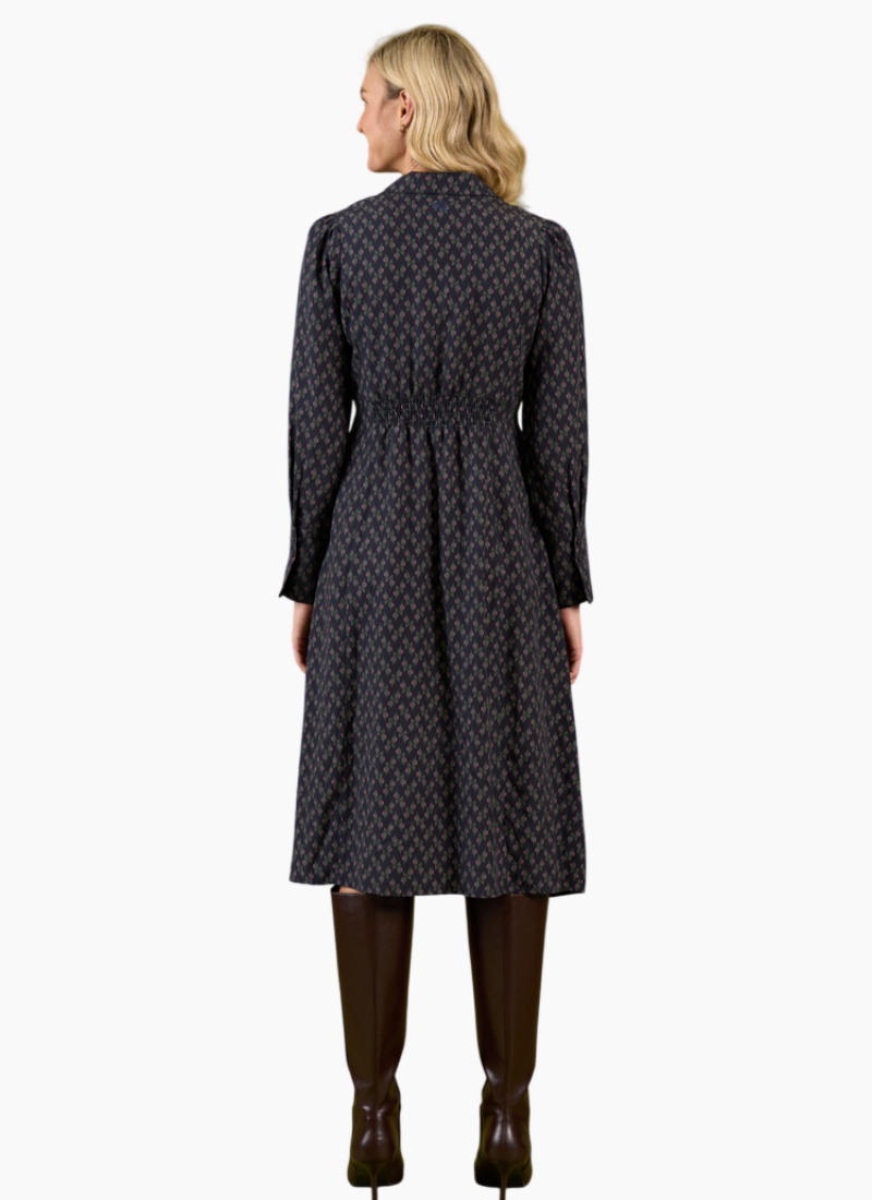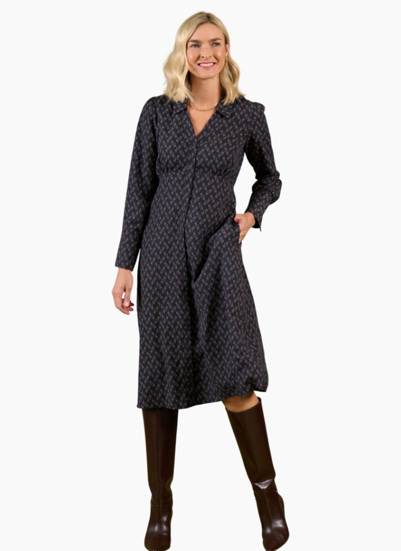Introducing the Britomart dress Under the sea from Charlie Jane. This navy printed dress combines timeless tailoring with easy-wear comfort for everyday dressing.
