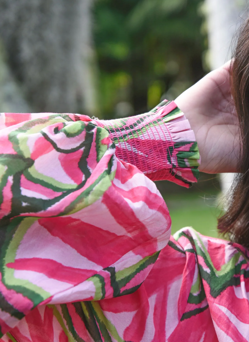 - Cut as a Casual/Day Dress in lightweight cotton voile, the vivid pink colourway is enlivened by painterly green motifs