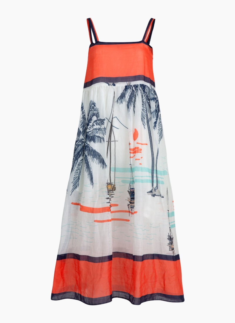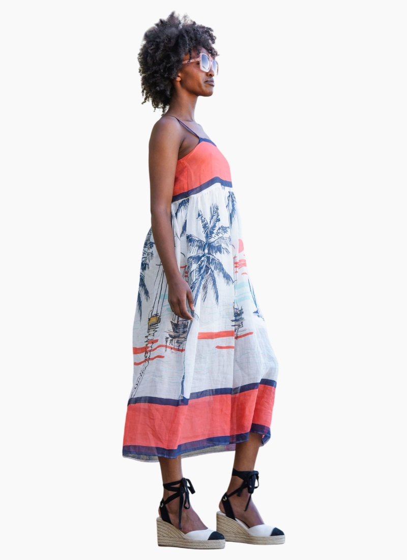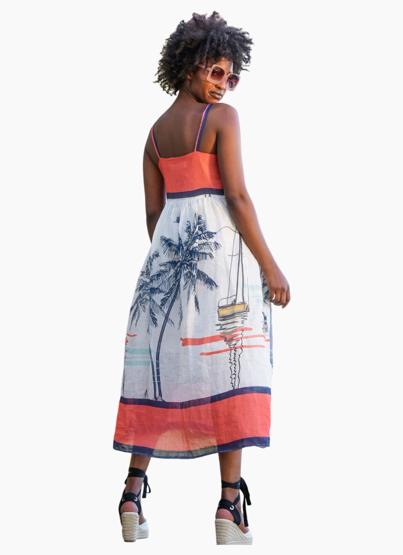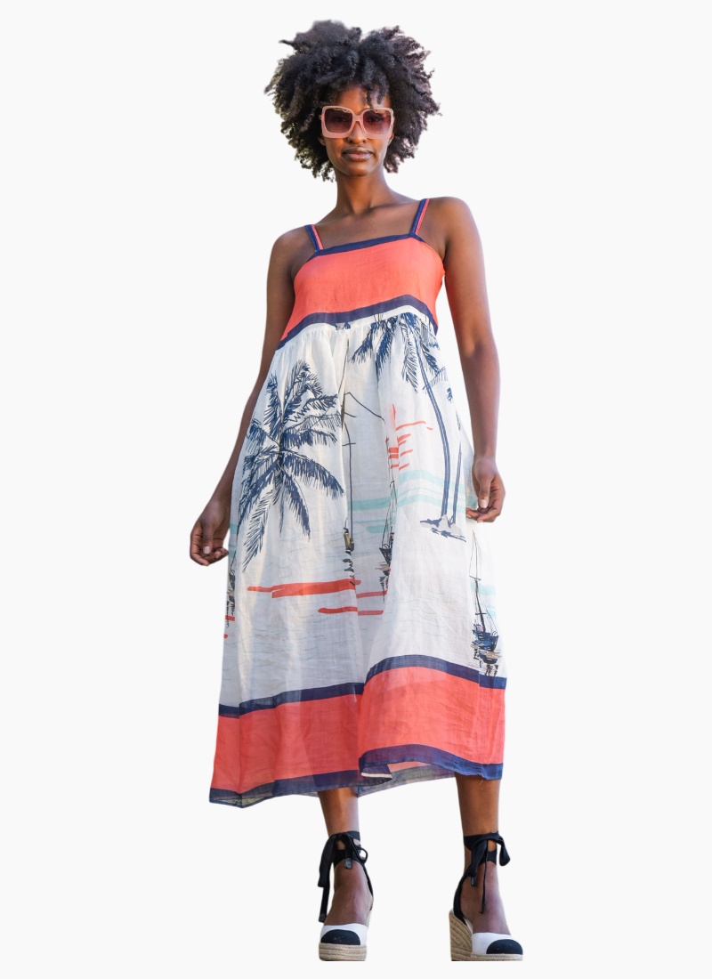 Bold hues and a gauzy basecloth come together to celebrate summer in the ‘On Deck’ dress. Sporting a nautical theme through the ‘Float Your Boat’ cotton ramie blend fabric, and a flattering fit with its A-line silhouette, this simple cut, strappy dress offers comfort and style all in one. • A-line silhouette • Side pockets • Side zipper • Lined CT5807-26MAR