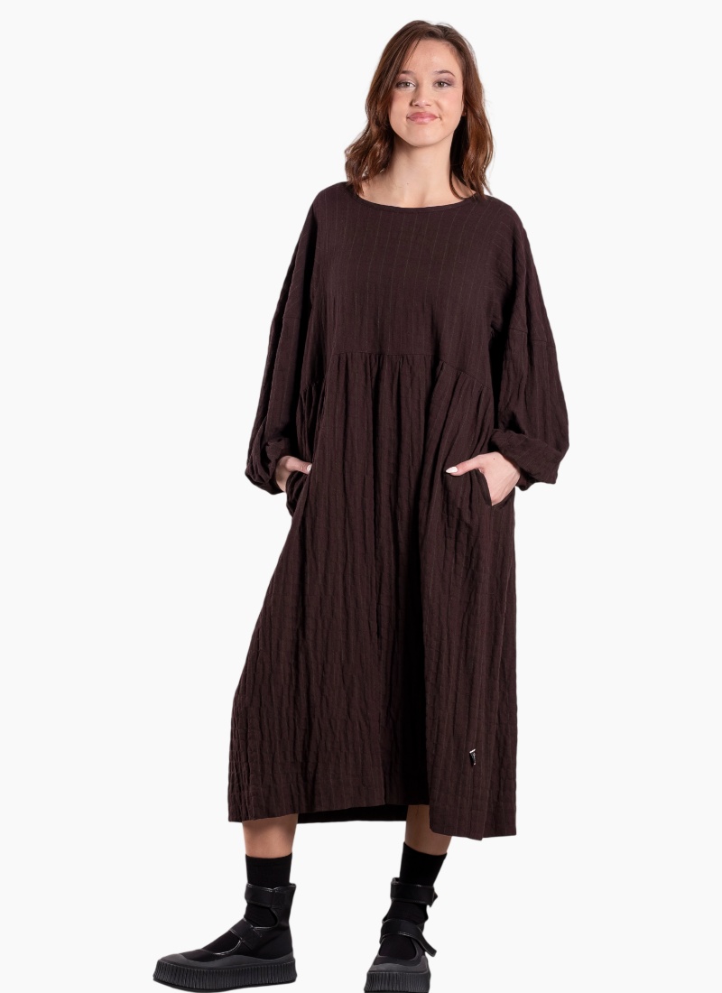 - Designed as a Casual/Day Dress with a generous, mid-calf silhouette and softly gathered waist