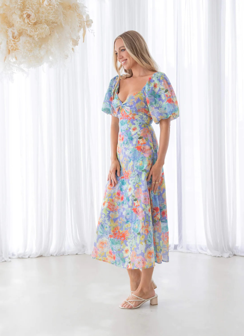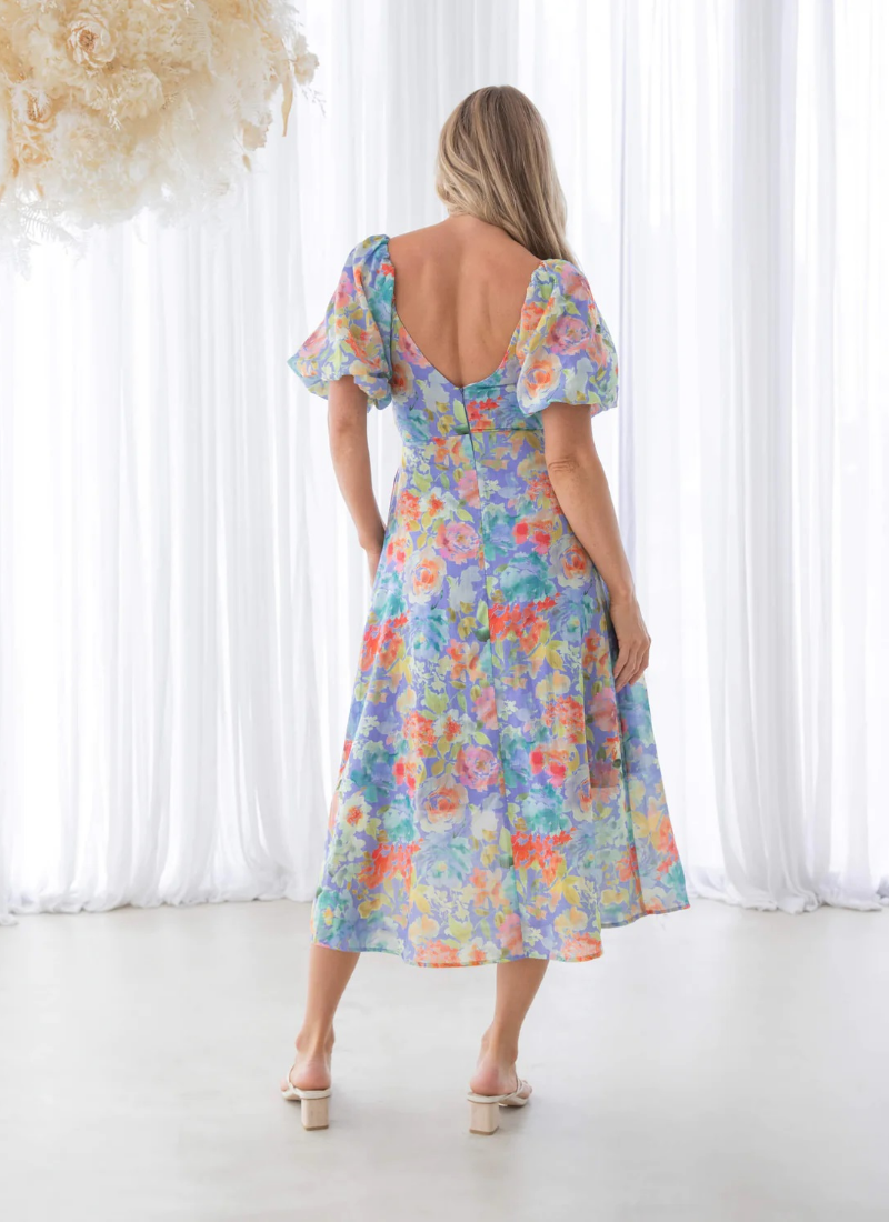 Introducing the Garden dress BLUE FLORAL from Ebby And I. This blue floral midi is a romantic, garden-ready number that blends vintage charm with modern ease.